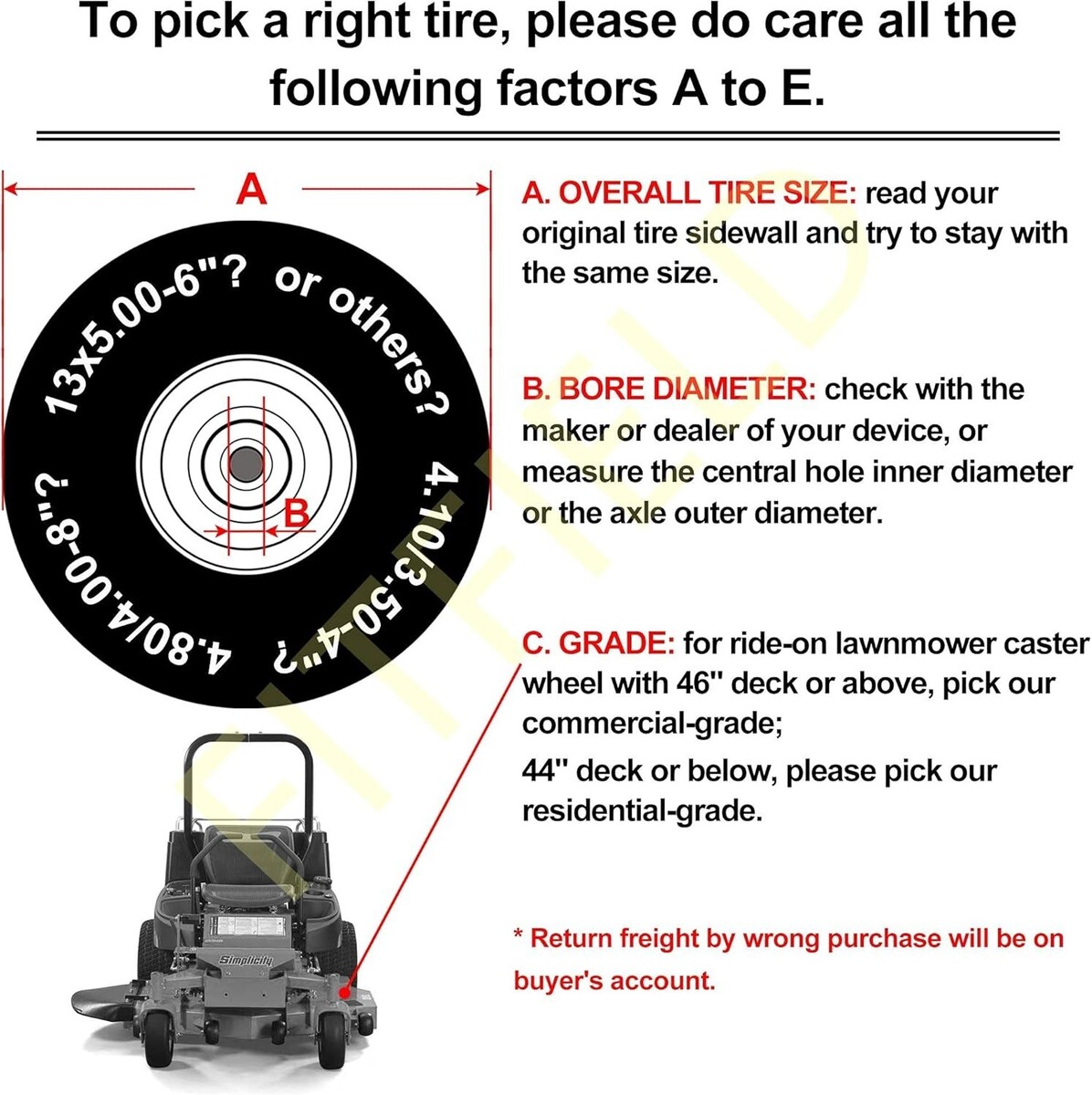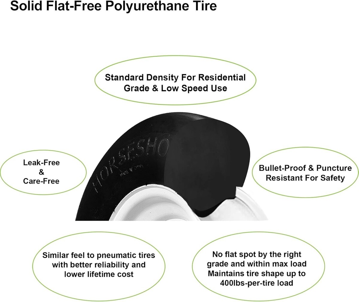 Features: Flat-free, maintenance-free puncture-proof, turf-friendly, with the bounce of a pneumatic tire; No need to check air pressure or add air anymore.