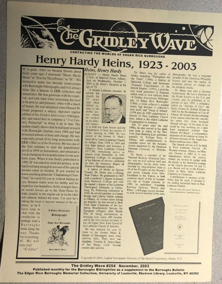 THE GRIDLEY WAVE #254 (2003) 2-page Edgar Rice Burroughs Tarzan fanzine