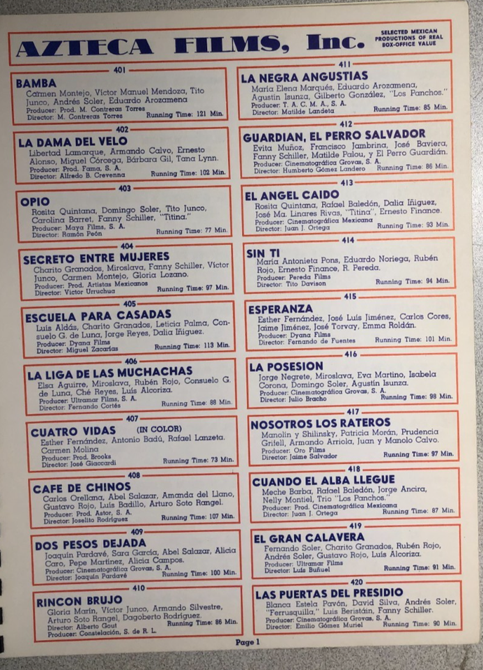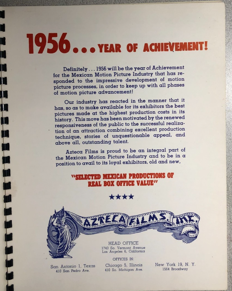 SELECTED MEXICAN PRODUCTIONS OF REAL BOX-OFFICE VALUE 1956 Azteca Films catalog