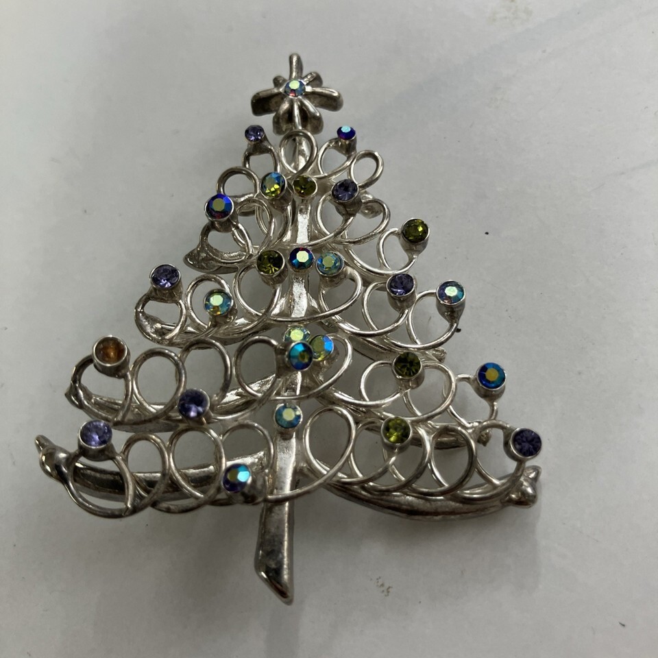 Christmas Tree Silver Tone 2.25” Pin Aurora and similar items