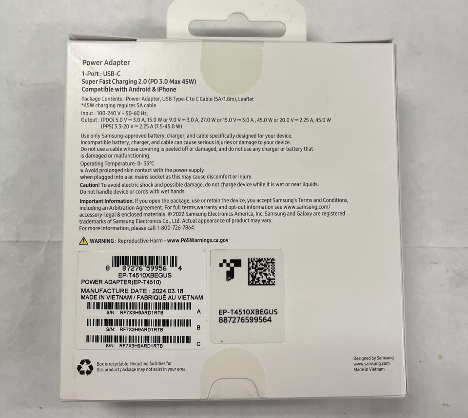 Samsung 45W PD Power Adapter USB-C Fast and 49 similar items