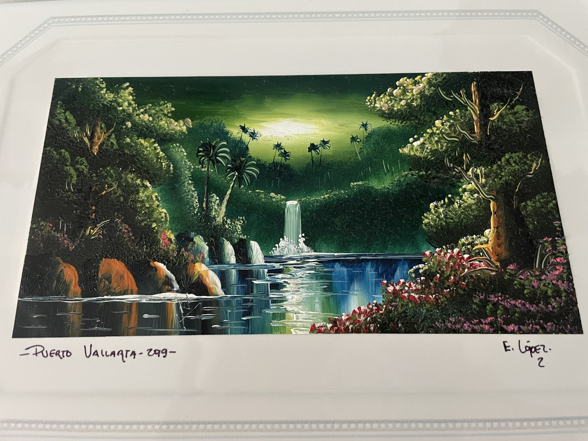 Hand Painted Tile Art Mexico Puerto Vallarta Signed E Lopez 2 12 1/8" x 8 1/8"