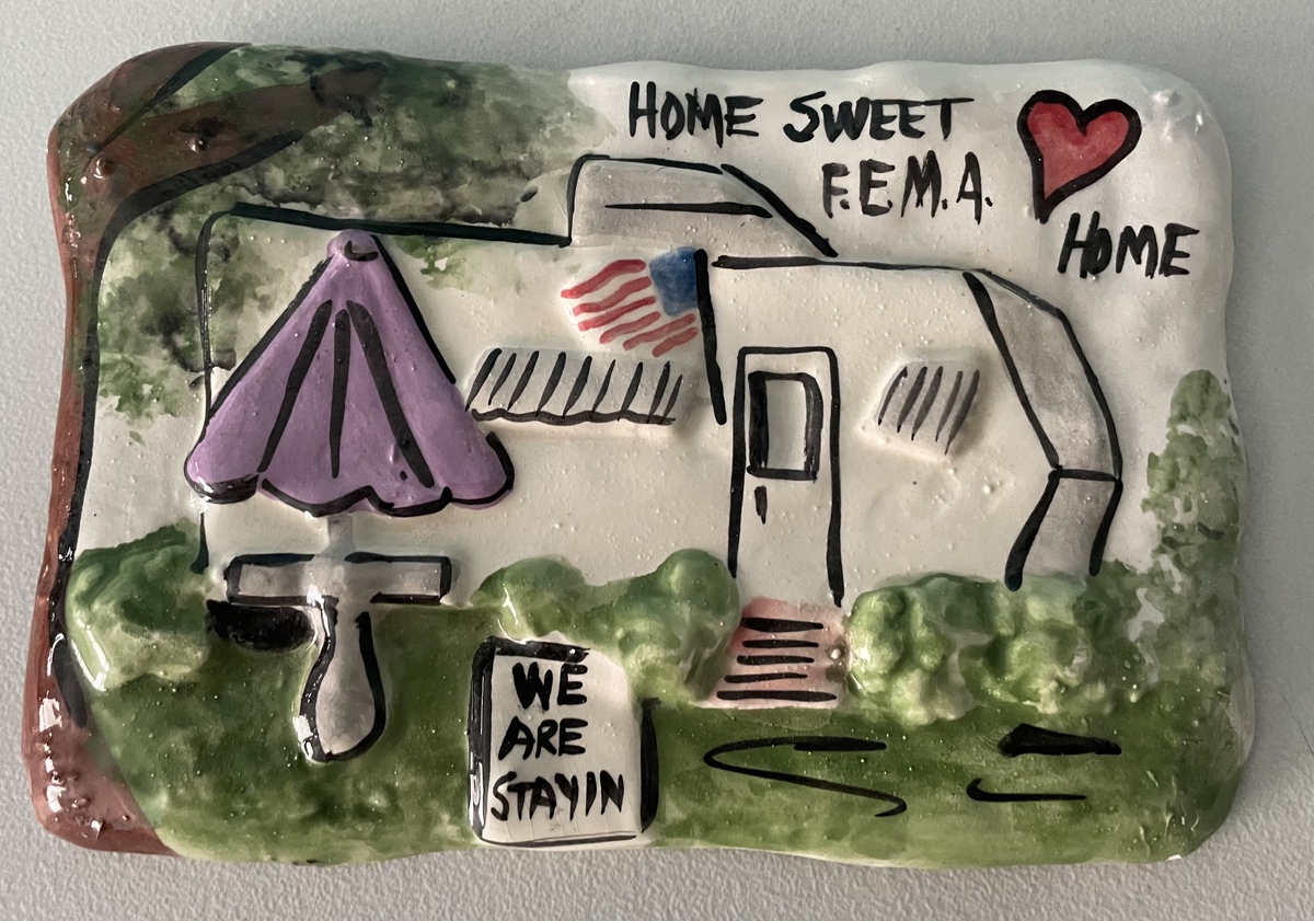 Clay Creations, by Jenise McCardell "Home Sweet F.E.M.A. Home" retired design 8"