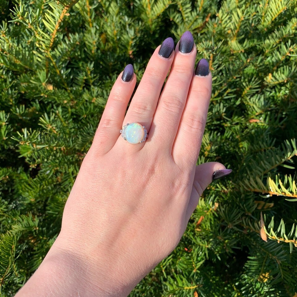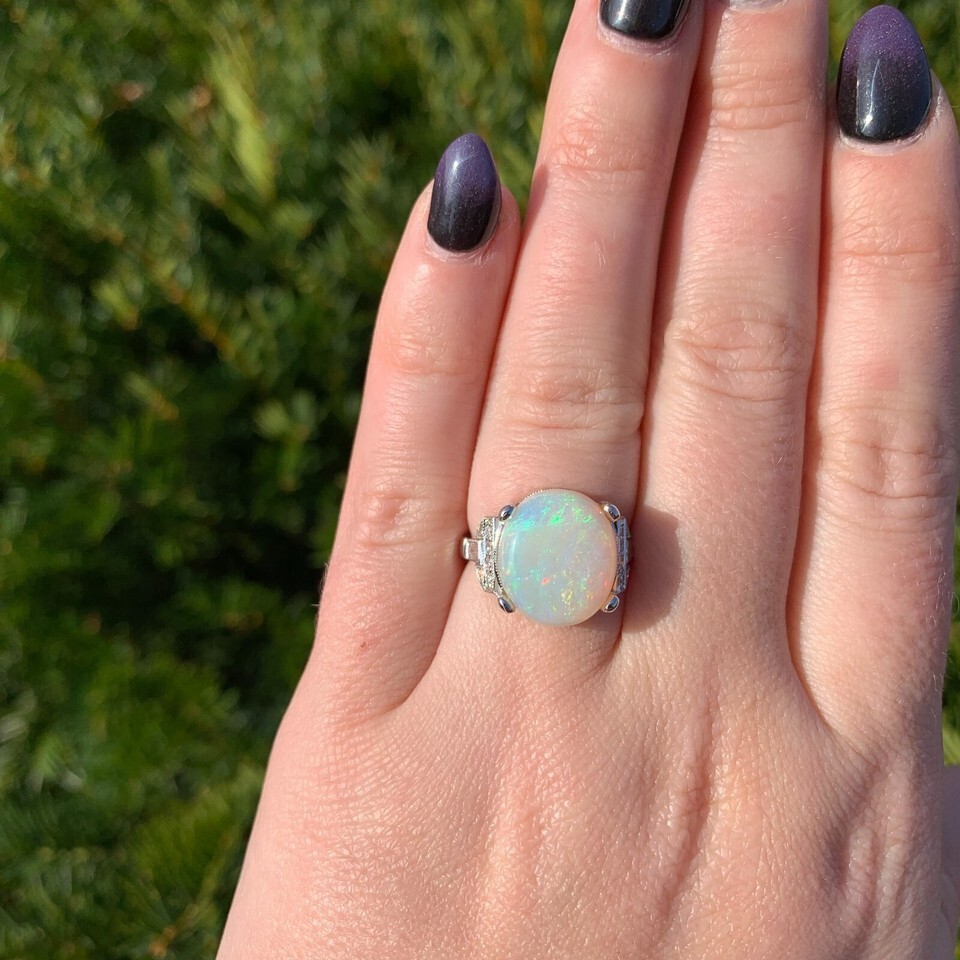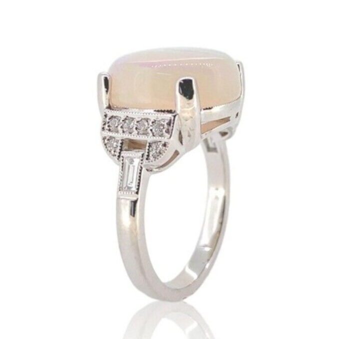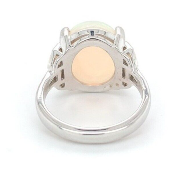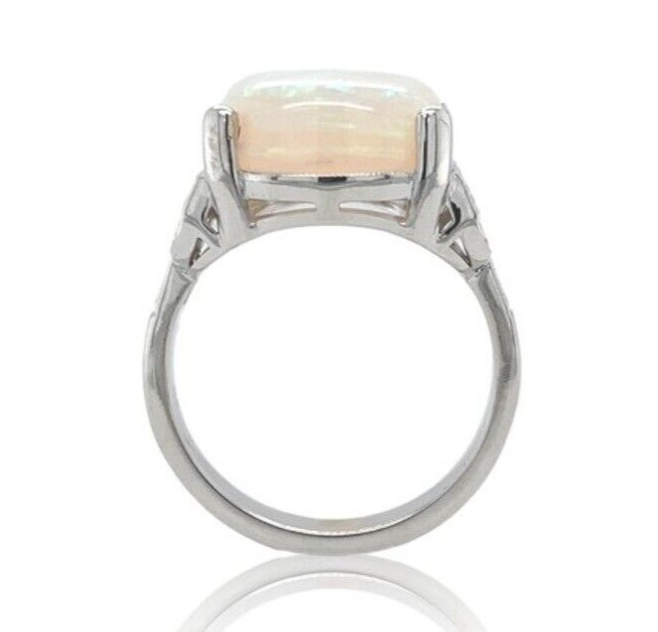 18k White Gold Large 6.88 Carat Genuine Australian Opal Diamond Ring (#J7009)