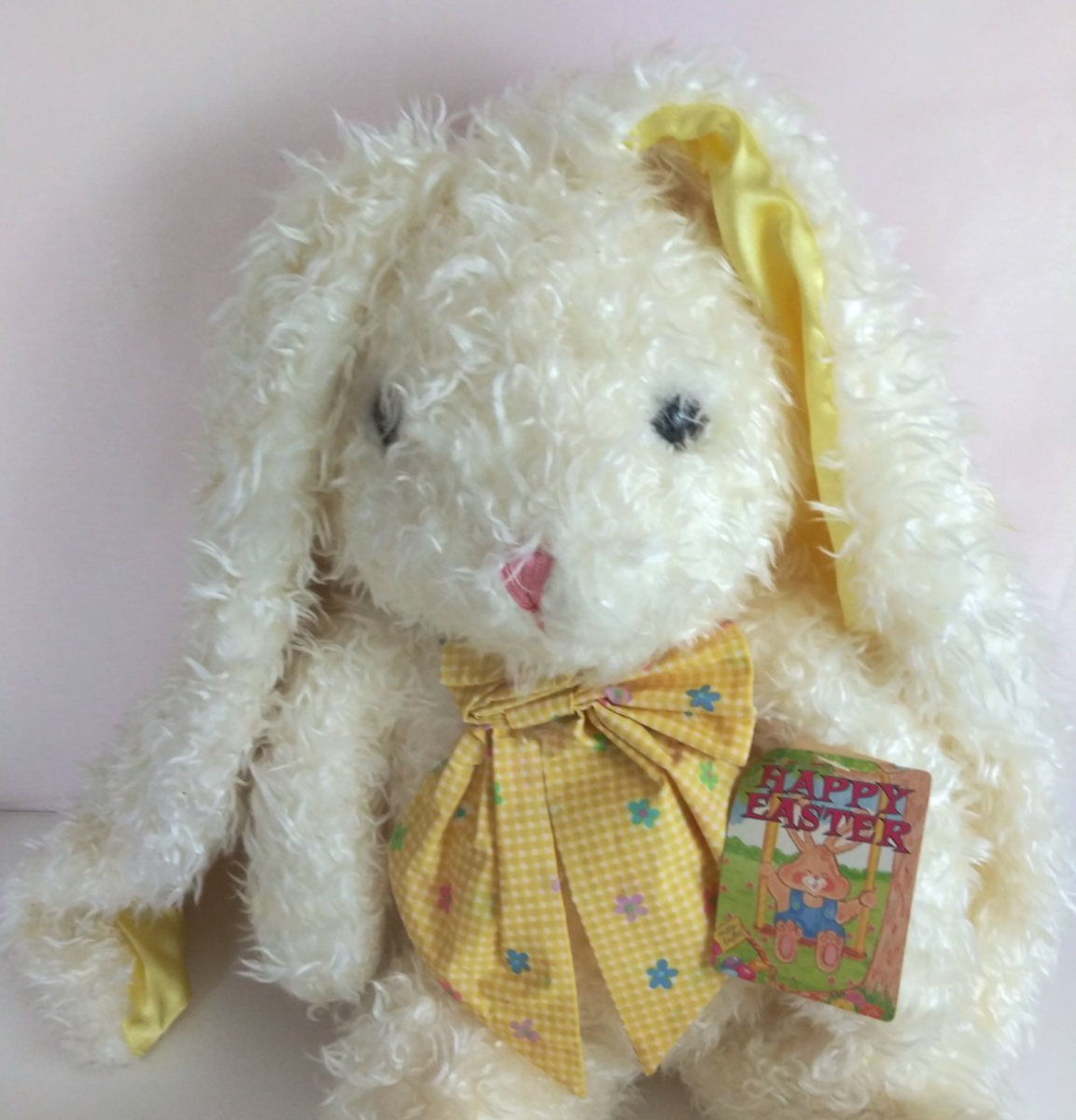 This is for a Vintage Commonwealth Floppy Ear Easter Bunny Yellow Floral Bow 20" Plush W/ Tag.
