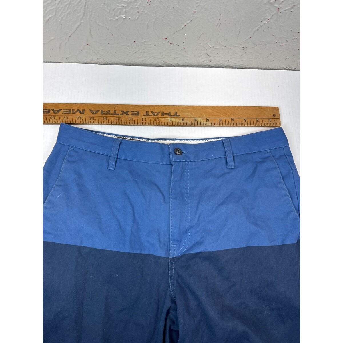 Volcom Vmonty Flat Front Chino Block Short Blue Two Tone Mens Size 33