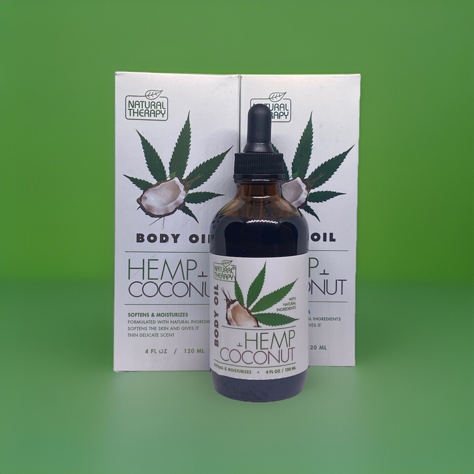 2 X Count Natural Therapy 4 Oz Hemp + Coconut moisturizing Body Oil