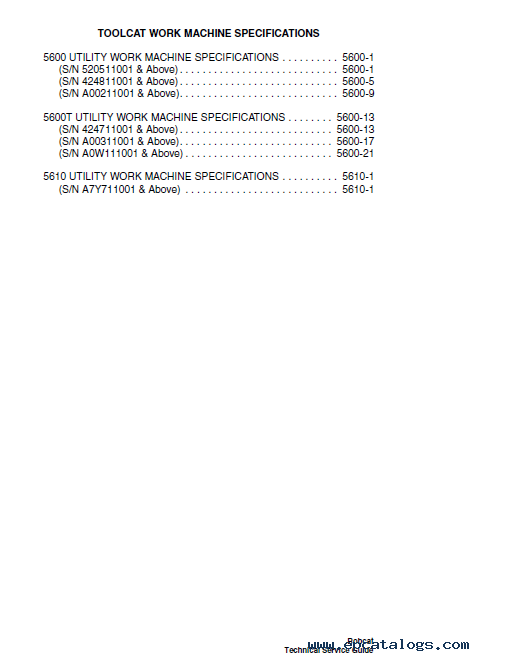5600T UTILITY WORK MACHINE SPECIFICATIONS