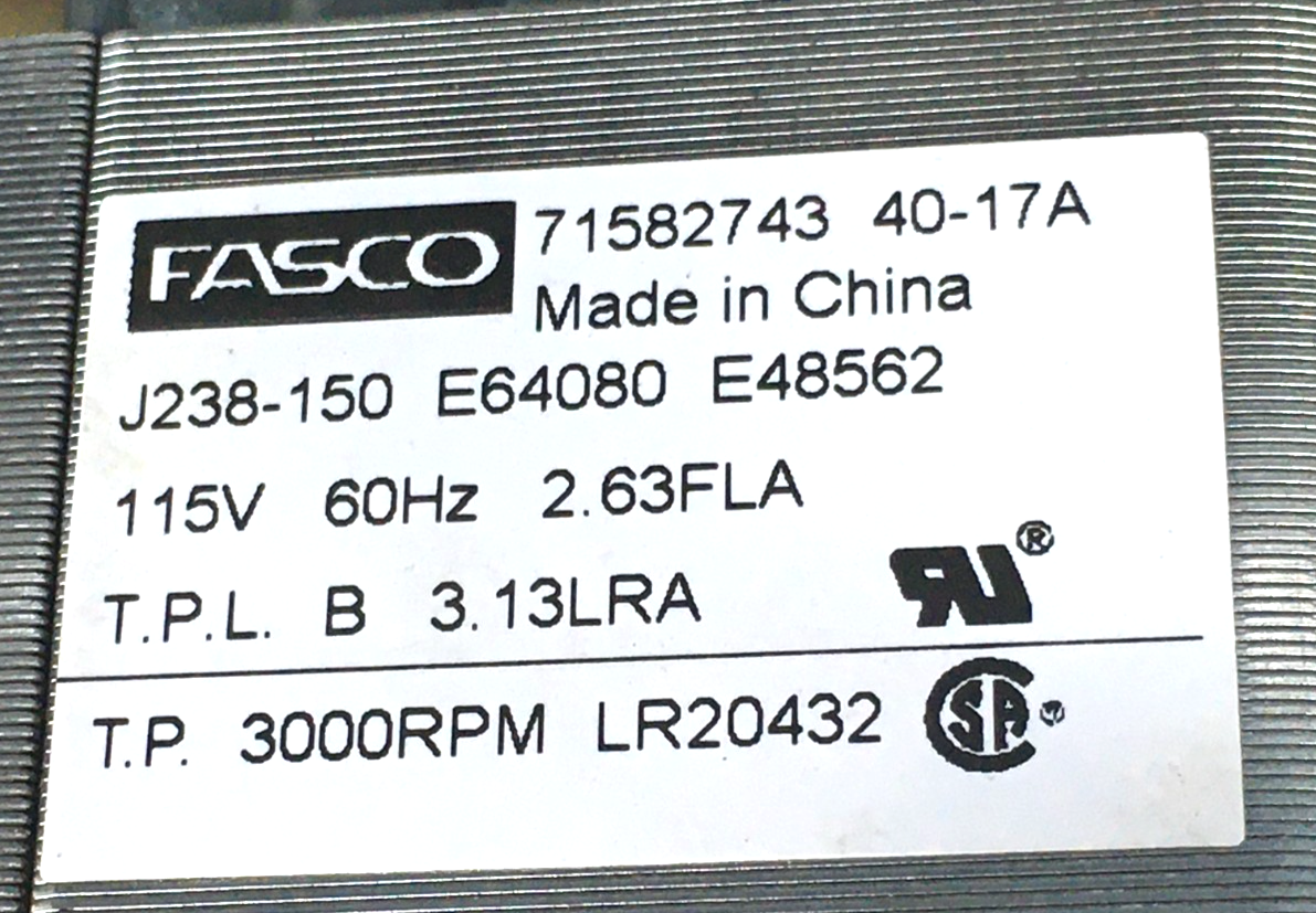 This is FASCO 71582743 Draft Inducer Blower Motor 70582743 1183211 115V 3000 RPM used part.