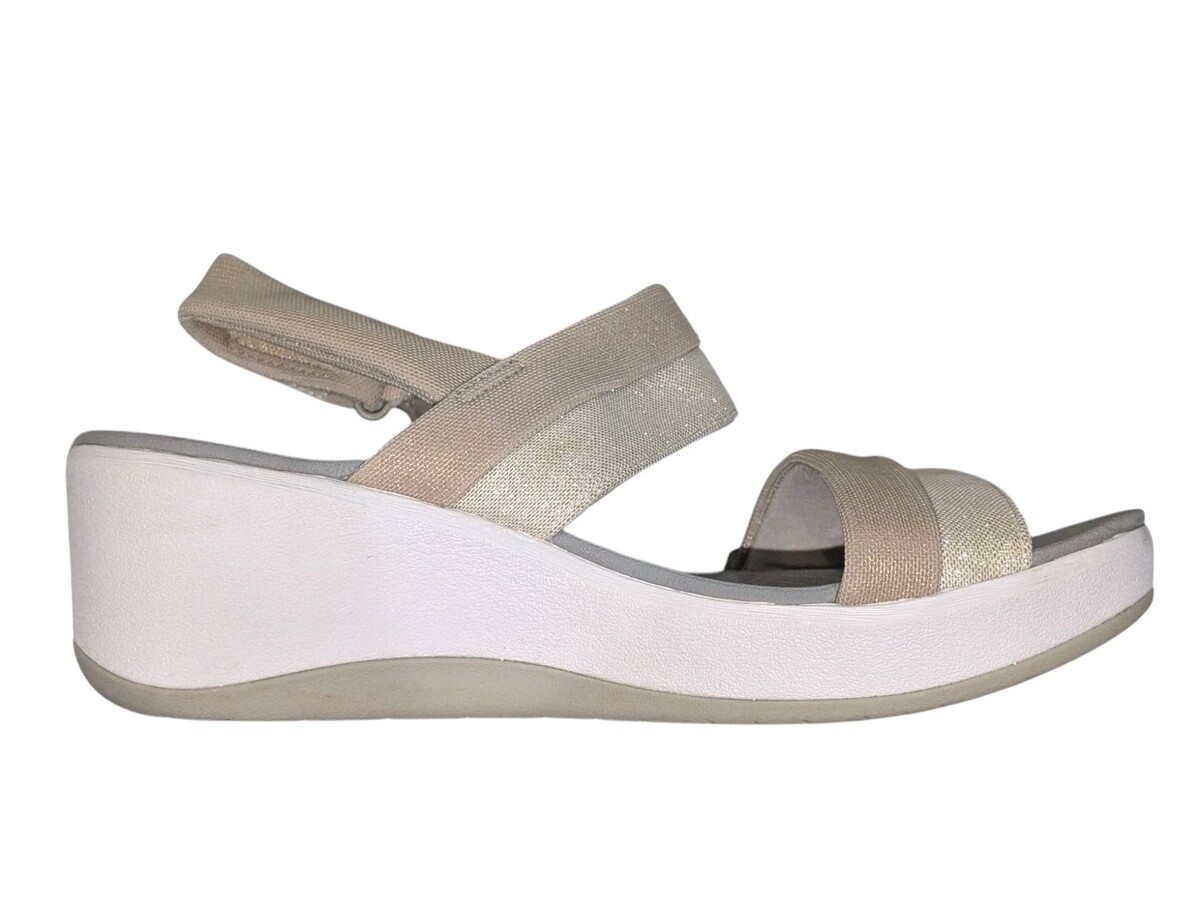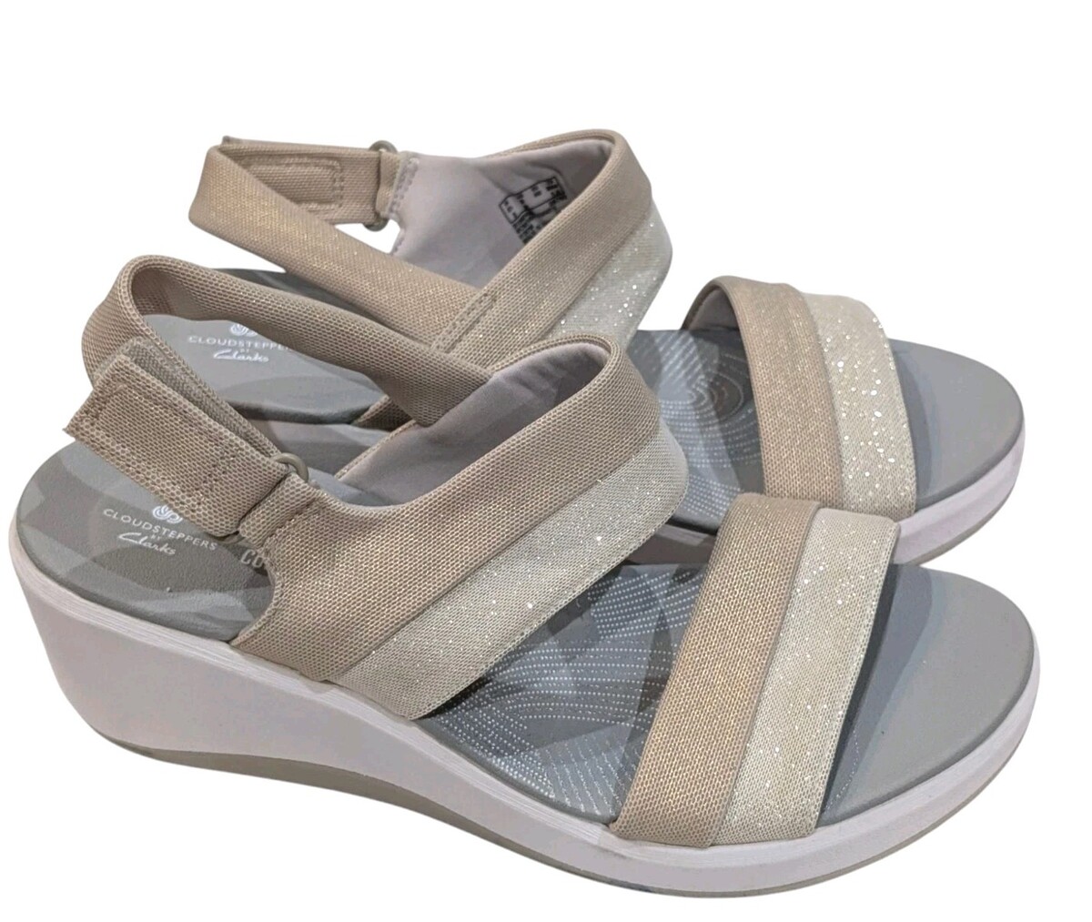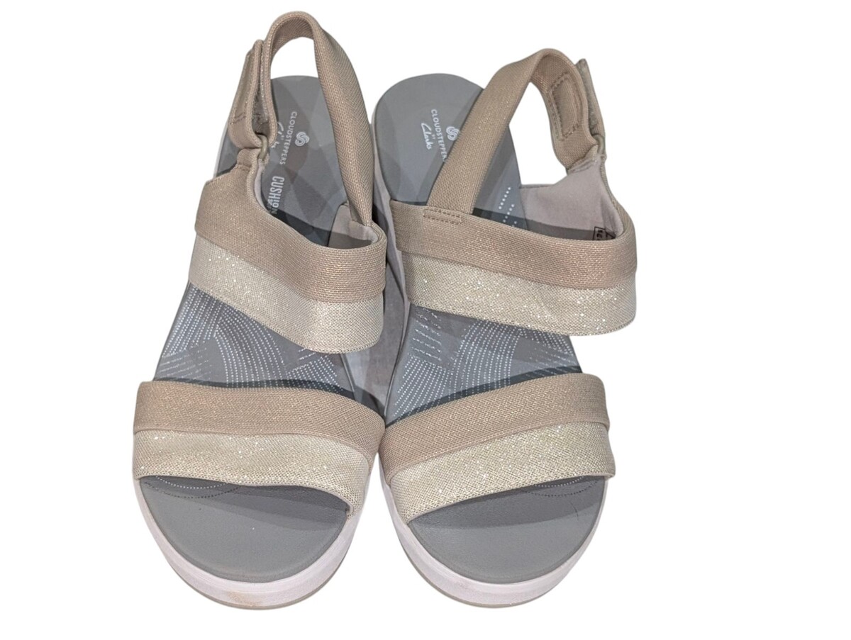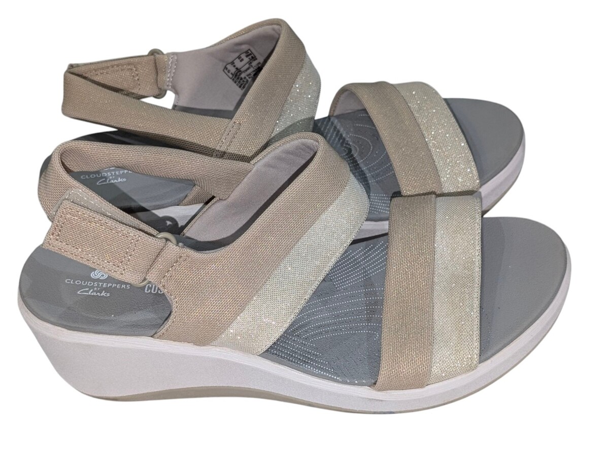 These are women's Clarks Women's Step Cali Muir Sandals size 9. Champagne Metallic .
