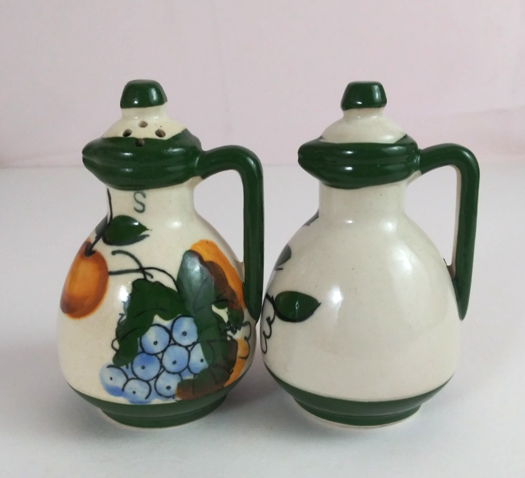 Vintage Colorful Fruit Design Pitcher Ceramic Salt & Pepper Shakers