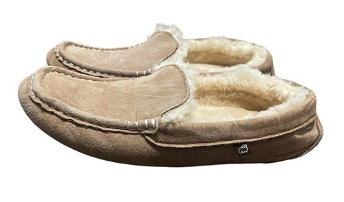 Lamo Women?s Fur Lined Suede Callie Moc slippers in size 8. Suede exterior with faux fur interior.
