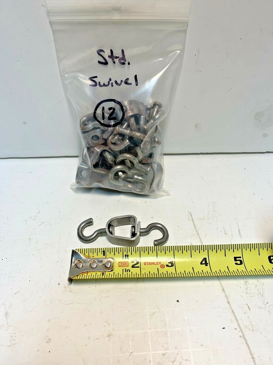 Up for sale are 12 standard multi purpose trapping swivels. You receive 12 of the swivels and 24 of the J-hooks.