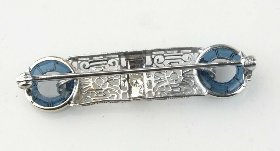 14k Weiss Gold Art Déco Diamant Solitaire Brosche W / Kristall Akzent Ring Tdw =