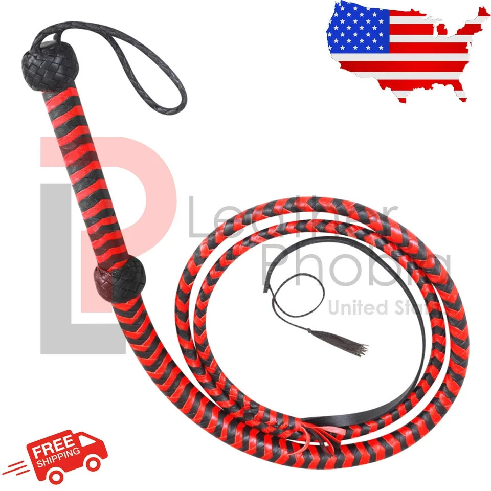 6-Foot Handmade Bullwhip Made from Real Cowhide Leather 12 Plaits,