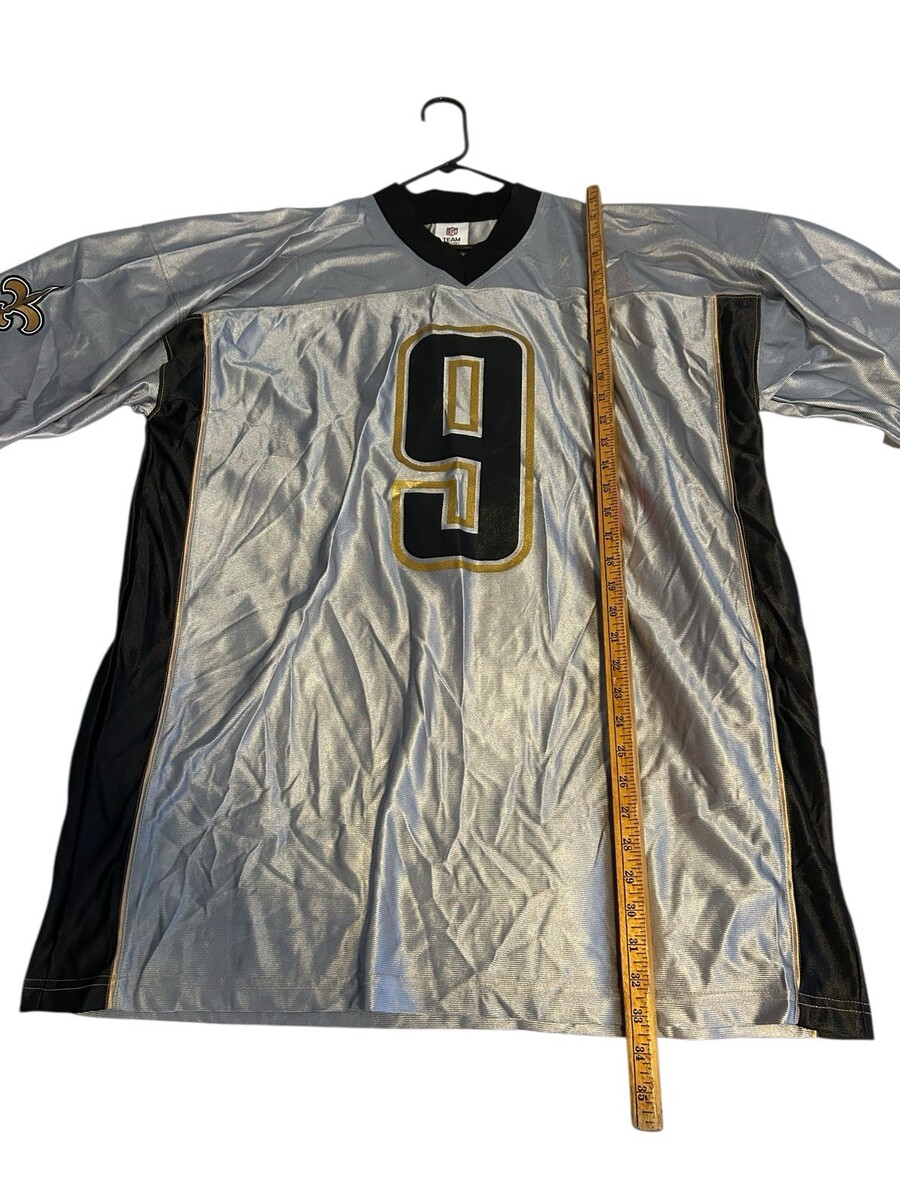 Drew Brees #9 Jersey Men's Sz 2XL NFL TEAM APPAREL Silver/Black/Gold New Orleans