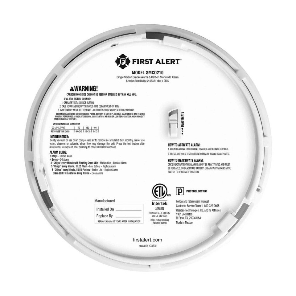 First Alert SMCO210 Sealed 10-Year Battery Combo Smoke and Carbon Monoxide Dete