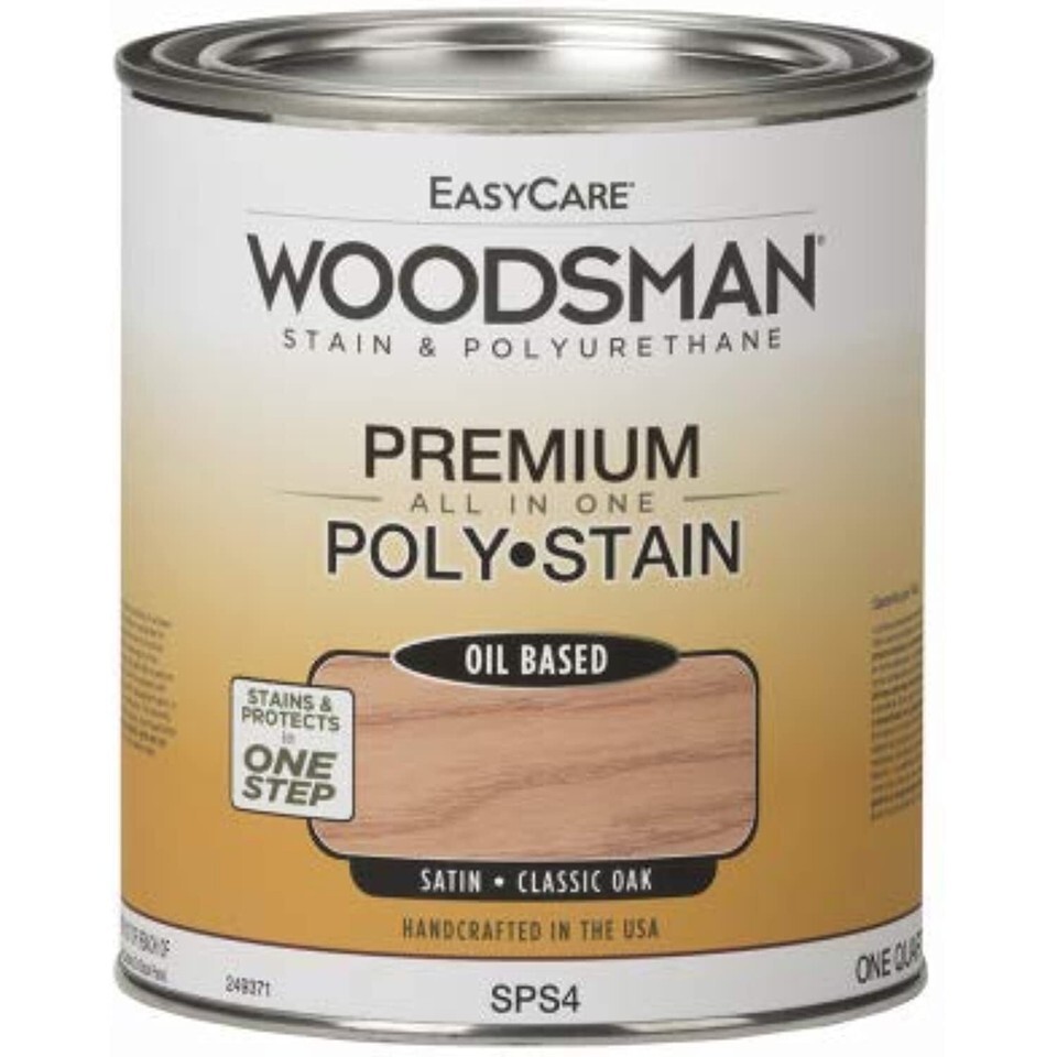 SPS4-QT, Easycare Woodsman, QT, Classic Oak, Satin, Poly Stain, Enhances Wood Grain By Combining Beautiful Rich Easycare Woodsman Stain Color and Long Lasting Satin Polyurethane Protection In One Easy Step, VOC 450 G/L, May Be VOC Restricted In Certain Areas, Please Refer To The Restricted Items Report On Mol For A List Of Items That Are Restricted In Your Area.