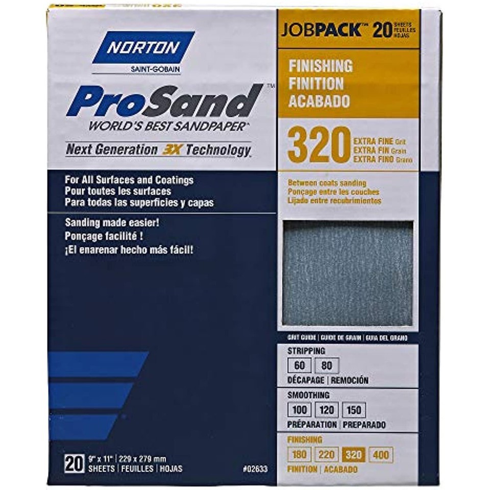 Norton ProSand Premium Job Pack Abrasive Sheet, Next Generation of 3X Technology, Fiber Backing, Aluminum Oxide, Grit P320 20 Sheets
