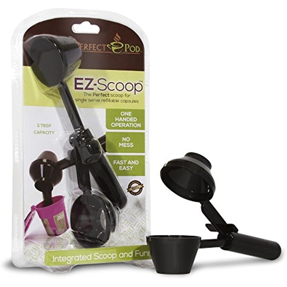 EASY TO USE - Simply scoop, close, flip, and pour. EZ-Scoop's capacity scoops the perfect amount of grounds for a single-serve coffee pod, no measuring! The built-in funnel assures no grounds escape and prevents messy spills.