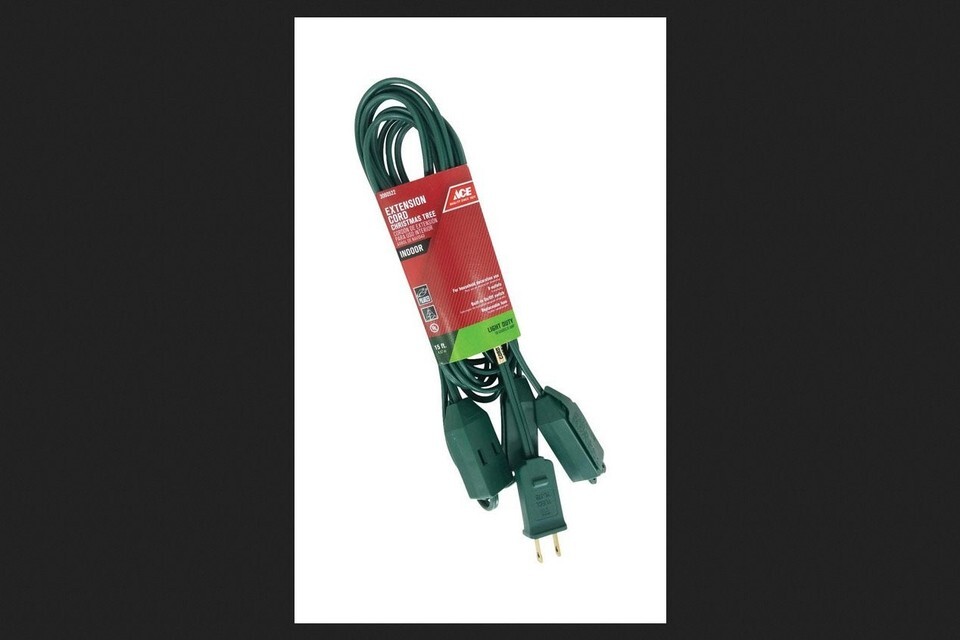 18/2 SPT-2. 15 ft. 5 amp; 125 volt; 625 watt. PVC insulation. Flat wire. 2 conductor polarized. Can be easily strung inside tree to provide multiple outlets. Cord contains 3, three outlet receptacles located 11.5, 13.5 and 15 ft from plug. On/off switch located 3 ft from plug. Excellent for ceramic village and other decorations. UL listed. Replacement fuse:Ace #9814286. Green. Sleeved.