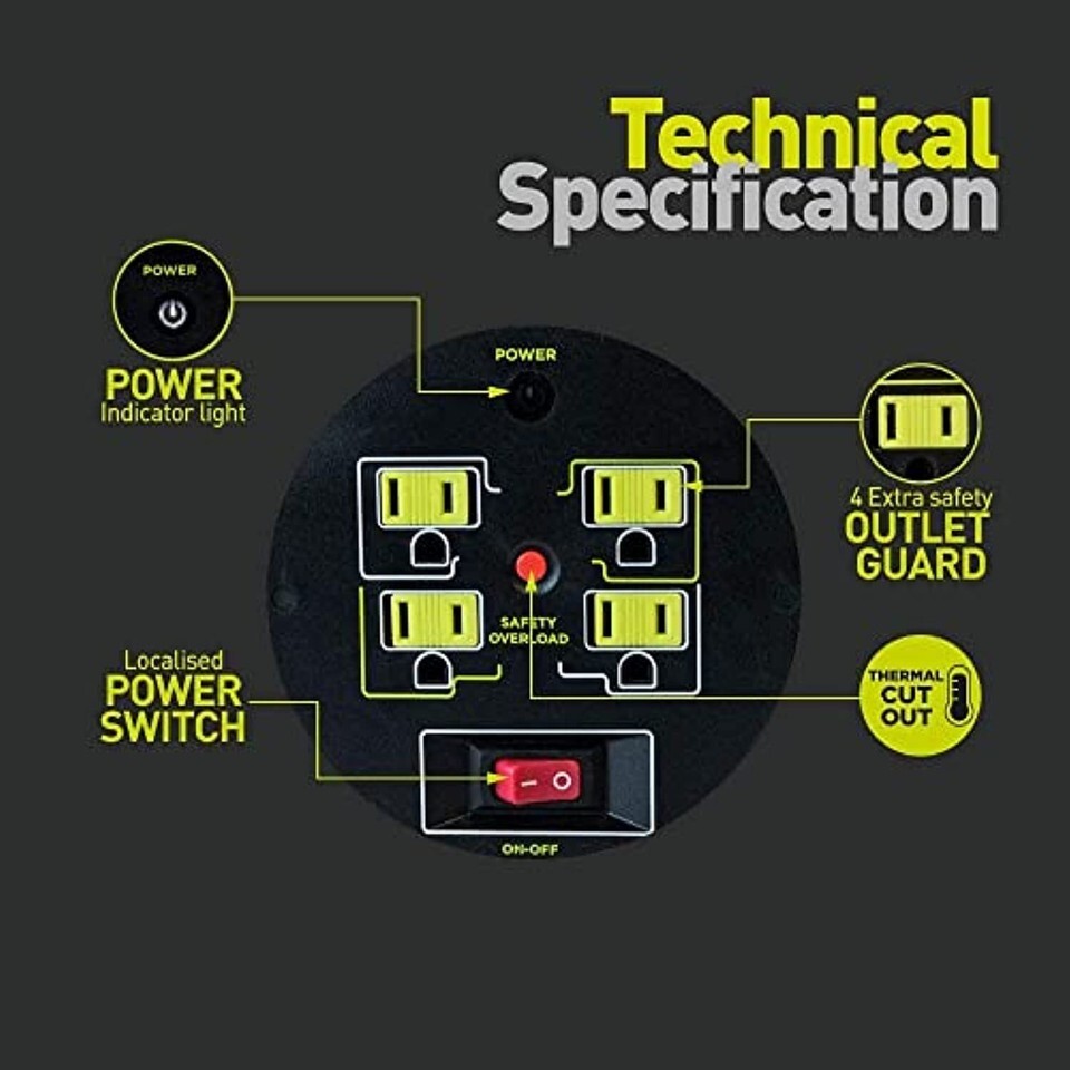 SAFETY THERMAL CUT OUT WITH LED POWER INDICATOR: Prevents the cable overheating when fully reeled and allows you to reset if a cut-out occurs