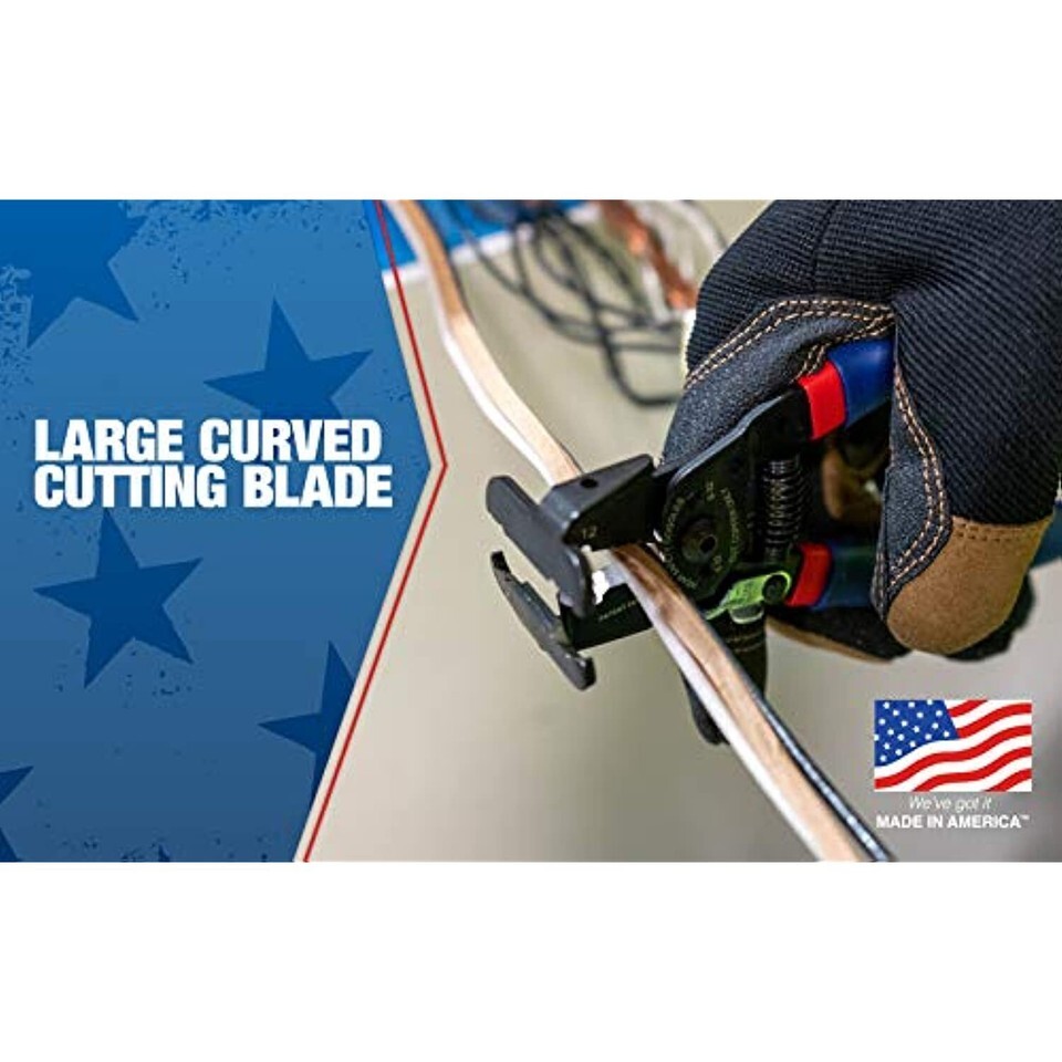 Southwire's SNM1214HH-US ROMEX BOXJaw Wire Stripper, Dual Wire Cutter Strips both 12/2 14/2 Romex NMB JACKETS and 12 and 14 AWG Solid Wire. The wire stripper is proudly made in the USA and has a patent pending design. It strips both 12/2 14/2 Romex NMB jackets. This stripper features a large curved cutting blade as well as 12-14 SOL AWG single conductor stripping holes. The handles are double dipped and spring loaded for maximum comfort and torque.