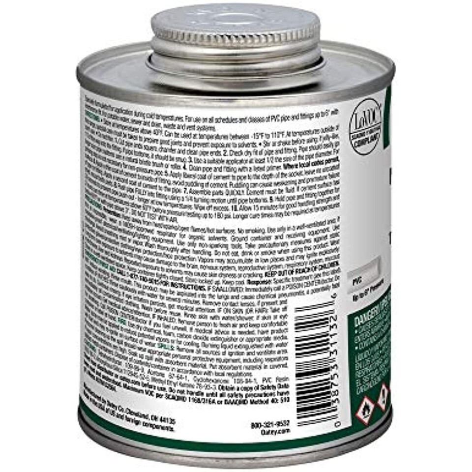 Product Description 16 oz, PVC all weather cement, formulated for fast initial set up at temperatures down to 10 degree Fahrenheit, for Schedule 40 80 potable water pressure pipes as well as PVC dwv pipes, nsf listed. The product is manufactured in china. Easy installation and easy handling. From the Manufacturer Oatey products can be found in residential and commercial applications and have achieved excellent brand name recognition with consumers. All products are backed with the highest quality technical and customer support programs in the industry