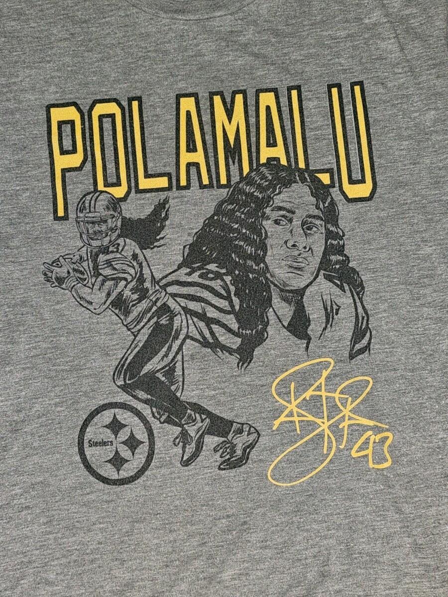 Homage Pittsburgh Steelers Troy Poluma Grey T-Shirt Adult Sz Large