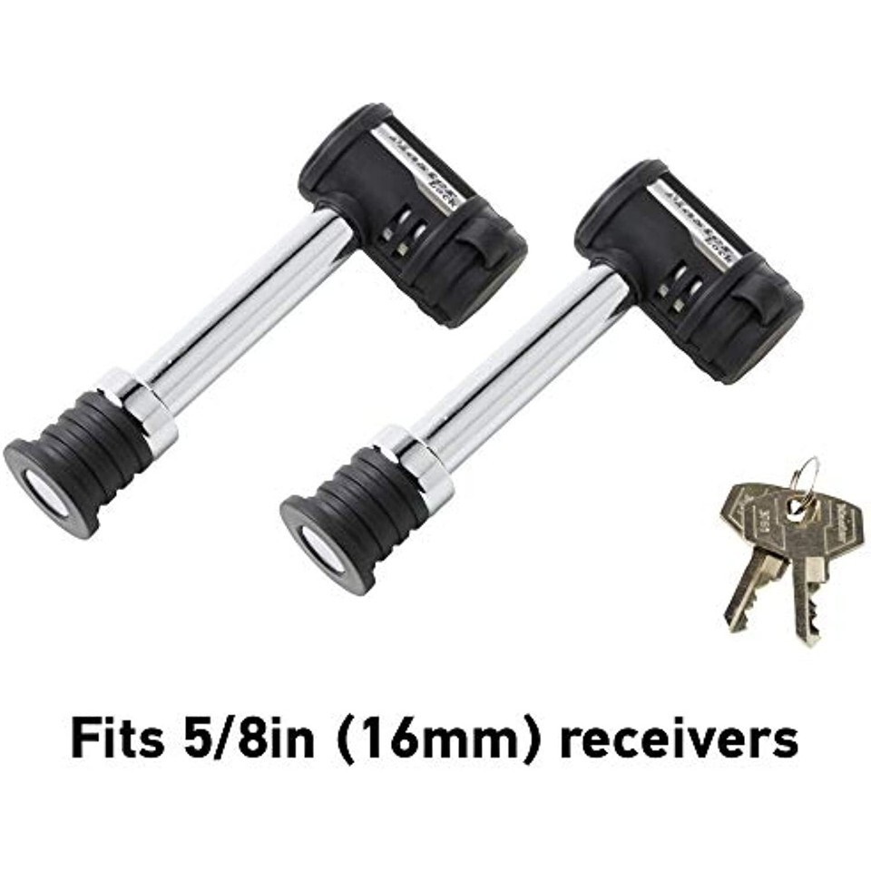 The Master Lock 1479TAT features two 5/8 inch (16mm) class III/IV barbell receiver locks, keyed alike. The receiver lock includes the push to lock locking mechanism, easily used by pushing the lock body firmly onto the pin and removing the key. The weather tough seal and water tight cap provides additional protection from moisture and dirt. The limited lifetime provides peace of mind from a brand you can trust. Class III/IV, 10, 000 pound load rating.
