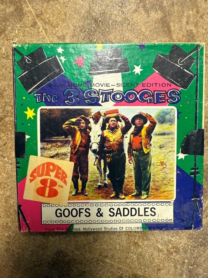 vintage SUPER 8 film: THE 3 STOOGES, GOOFS & SADDLES Black & White Silent