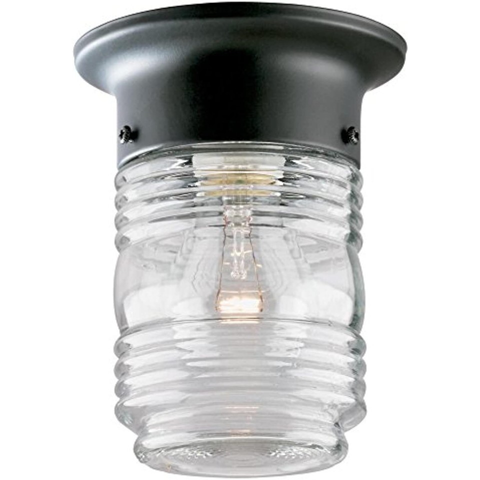Product Description JELLYJAR CEIL FIXT From the Manufacturer The Angelo Brothers One-Light Jelly Jar Porch Light features a black finish with clear glass. It measures 6 inches in height and 4-3/4-inch in diameter. It uses one clear standard base bulb (60-watt maximum) or torpedo (60-watt maximum). Angelo Brothers Lighting creates a variety of interesting and rich outdoor designs. Their outdoor lights suffuse the night with light, and provide security and comfort.