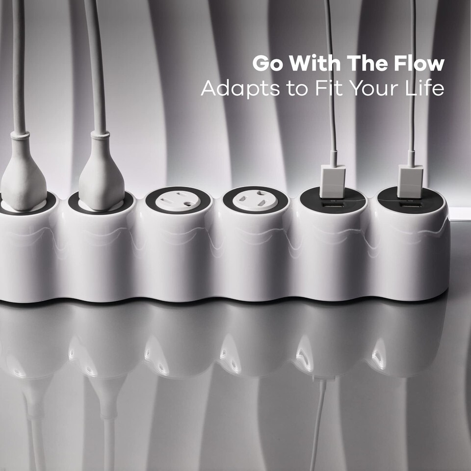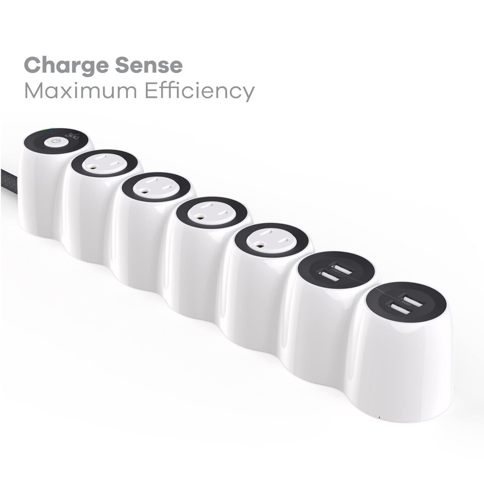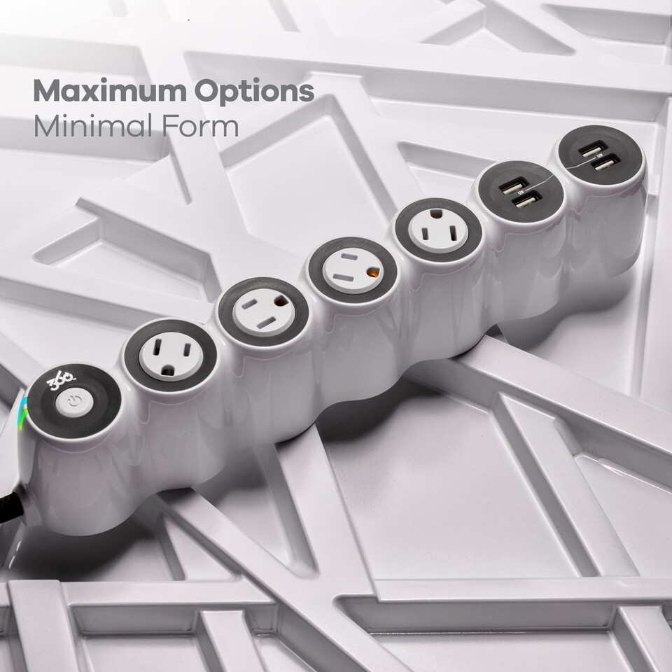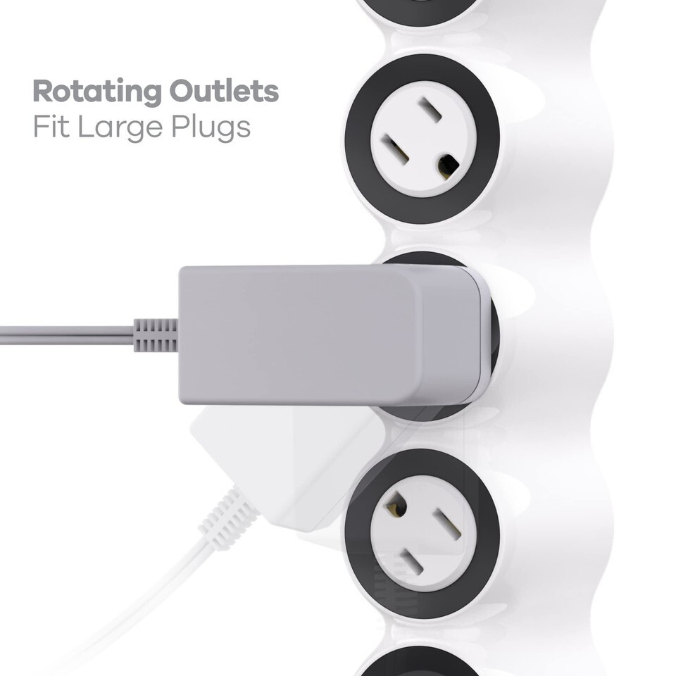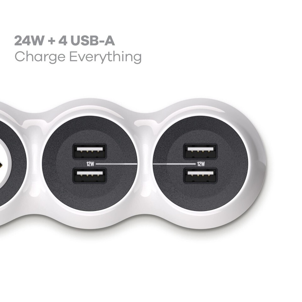 PowerCurve 24W Braided 4-Outlet Rotating Surge Strip w/ 4 USB-A Ports (5ft - White/Volcanic Grey)