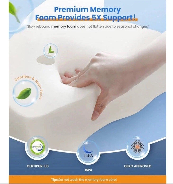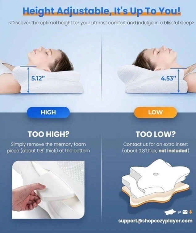 Ultra Cooling Neck Pain Relief Pillow, Adjustable Cervical Pillow. Memory Foam.