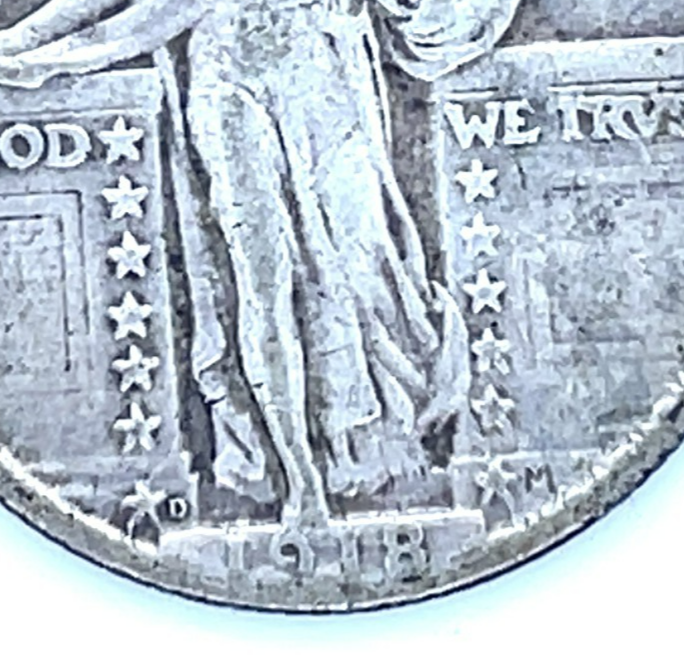 1918-D 25C Standing Liberty Quarter in Very Fine VF Condition, Nice Detail