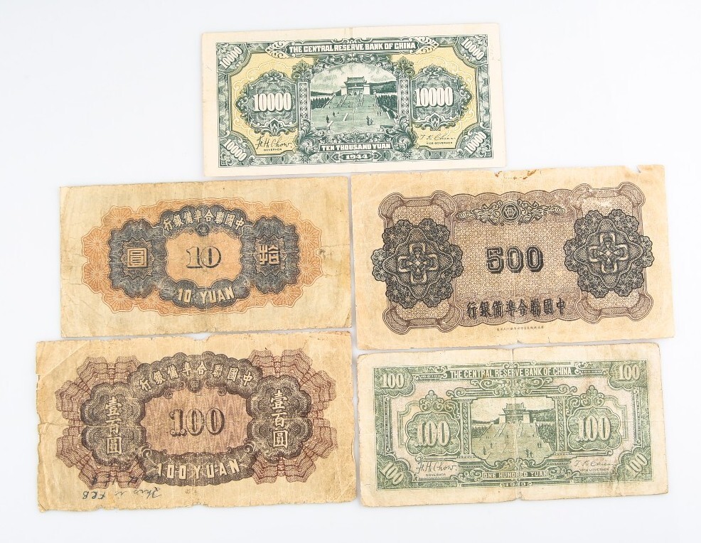 1943-1944 Cina ¥ Yuan Banconote Lotto (5) and 42 similar items