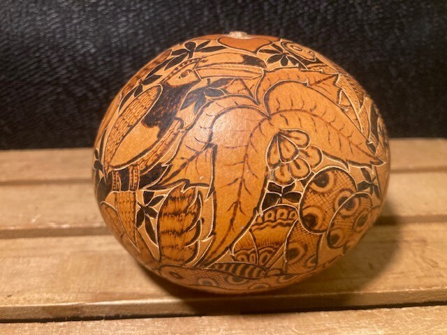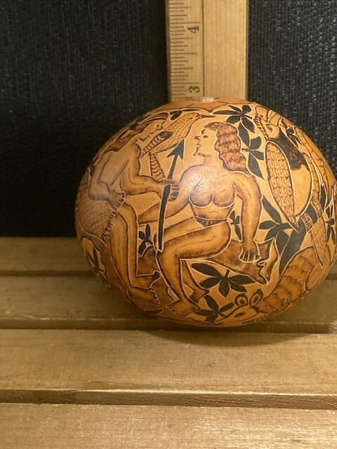 Vintage Peruvian Carved Gourd Folk Art Mate and similar items