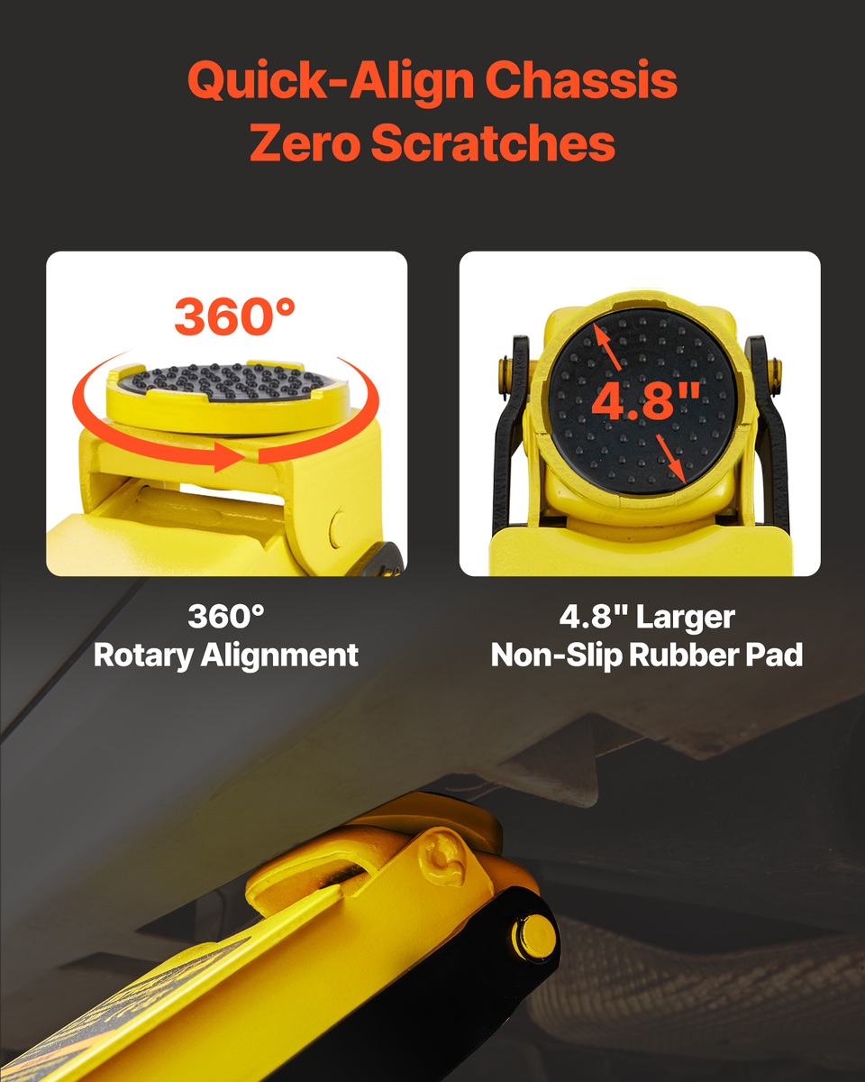 Jack it Up: With 3 tons/6600 lbs strong loading capacity, VEVOR's floor jack can help you raise your car for whatever reason. Replace a tire, change oil or maintain the brake, whether you are a professional, car enthusiast, or weekend DIYer to take matters into your own hands!