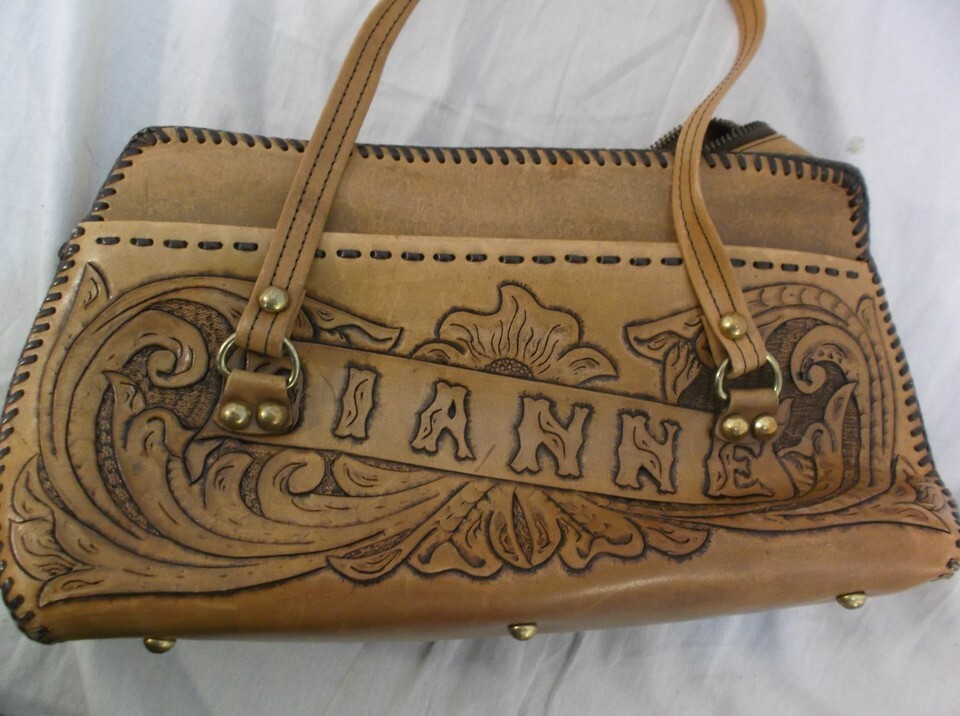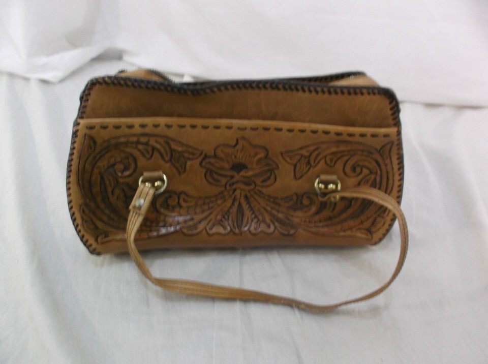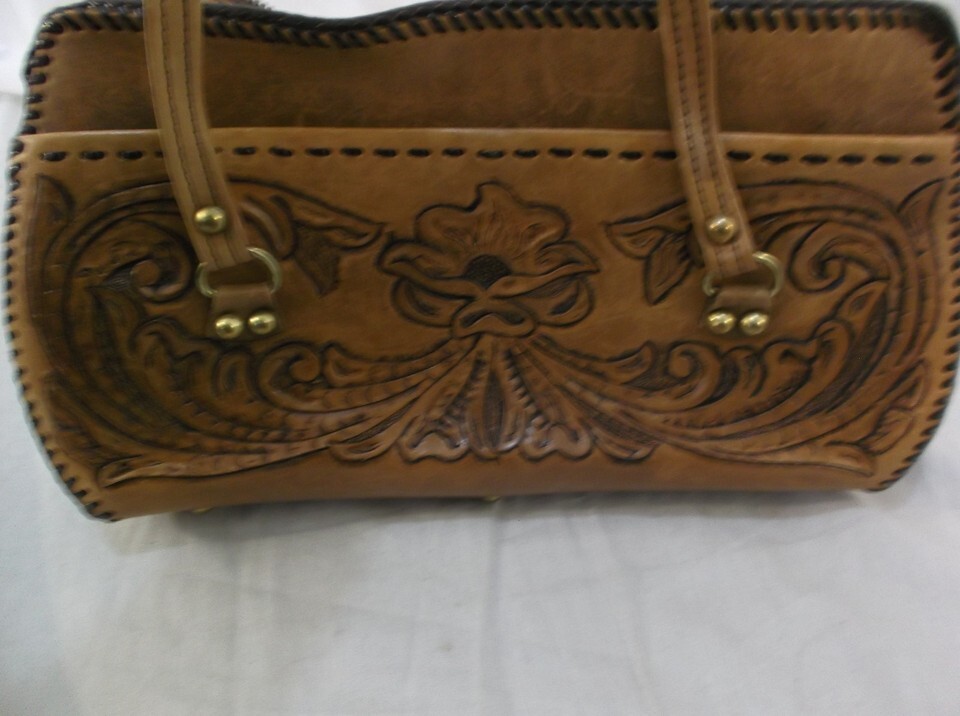Brown Leather Hand Tooled Hand Crafted Shoulder Hand Bag Purse 140165