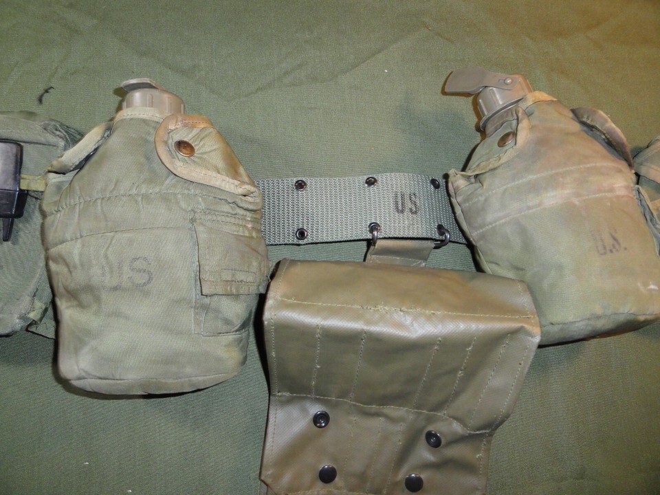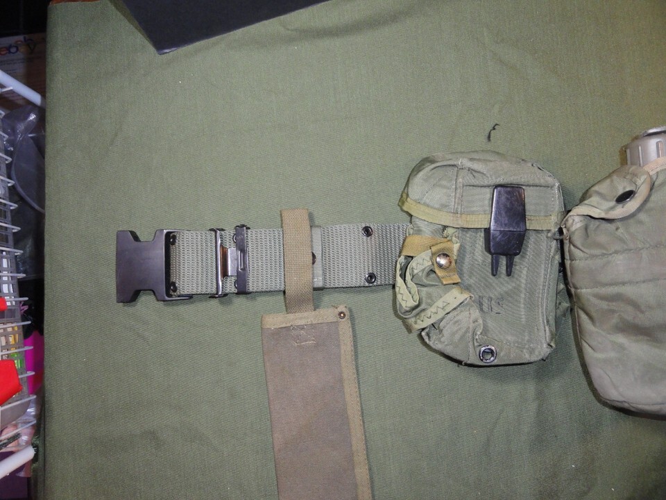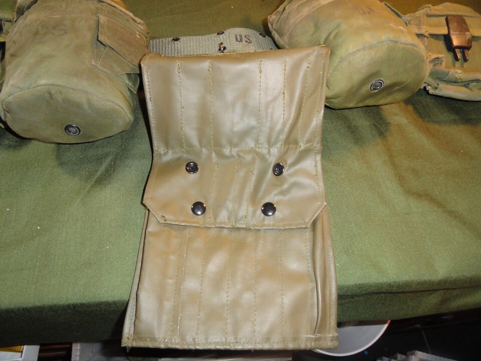POUCHES AND ACCESSORIES SHOWS WEAR : I COULD EASILY WASH THIS WHOLE RIG, BUT I BELIEVE EVERY SCUFF, EVERY MARKING, EVERY SCRAPE IS A BATTLE SCAR FROZEN IN TIME. EVEN WHEN A SOLDIER, AIRMAN, MARINE, SAILOR WRITES THEIR NAME OR UNIT ON THEIR EQUIPMENT ITS A PIECE OF ART THAT LIVES FOREVER.