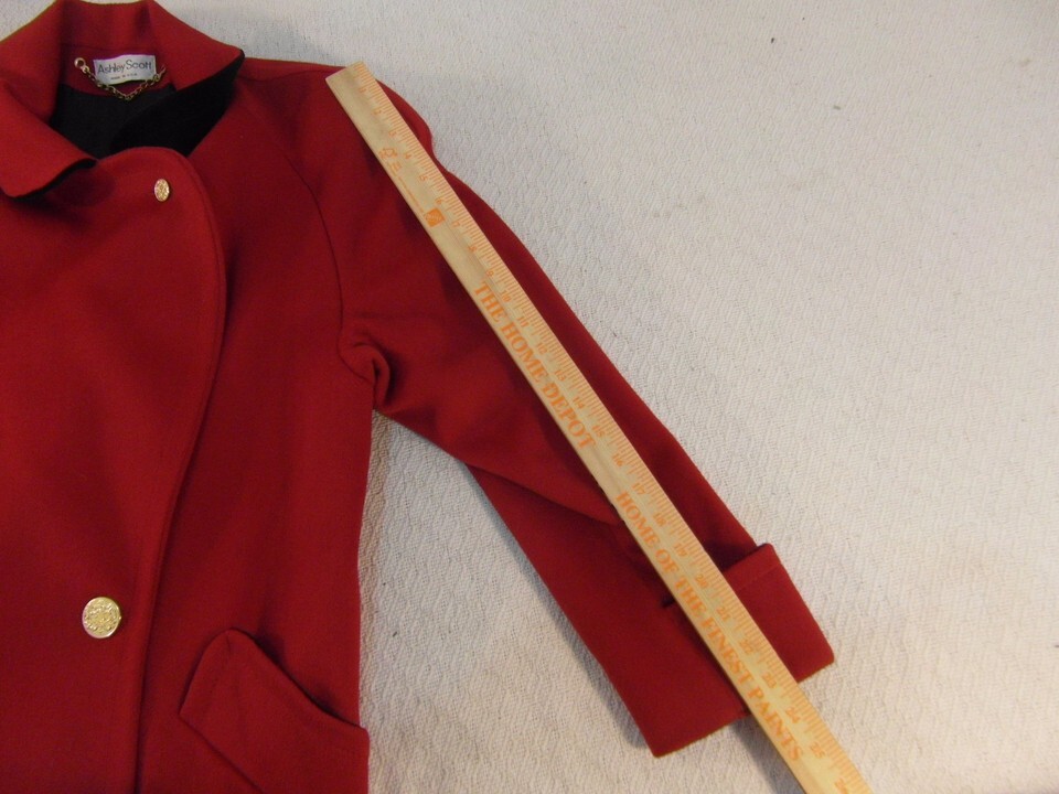 Adult Women's Ashley Scott Red Black Liner 100% Wool Button Trench Coat 33775