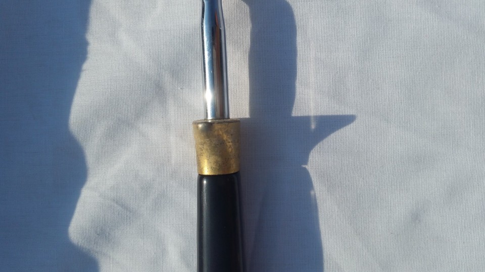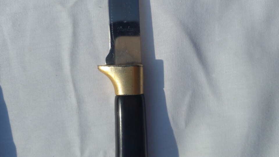 Vintage set of 2 knives AND 1 serving fork made by John Hull Cutlers Corp. Hull of Meriden. Knives "guaranteed" forever sharp. Blades are Sheffield stainless steel made in England.