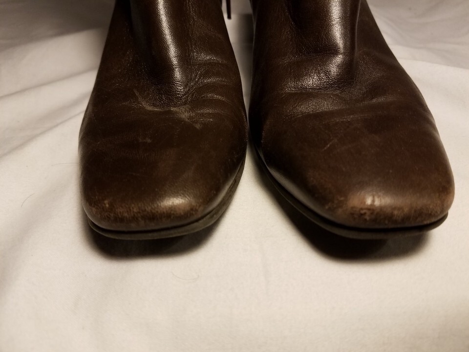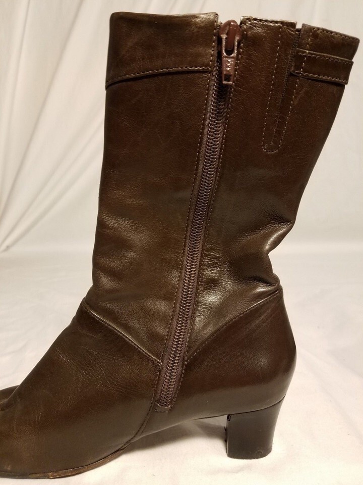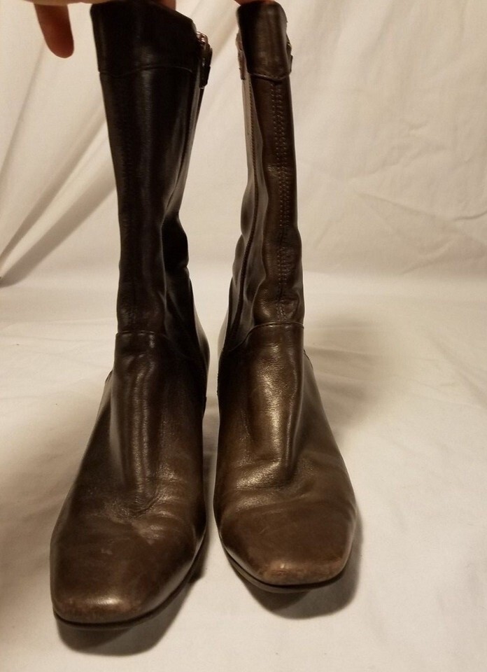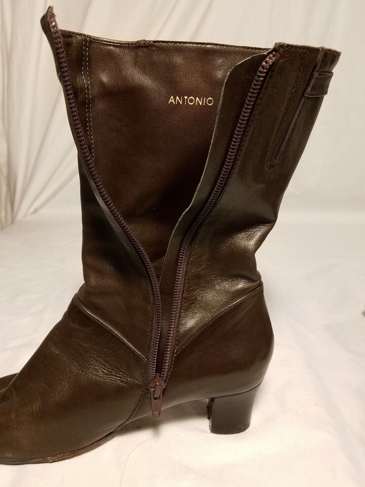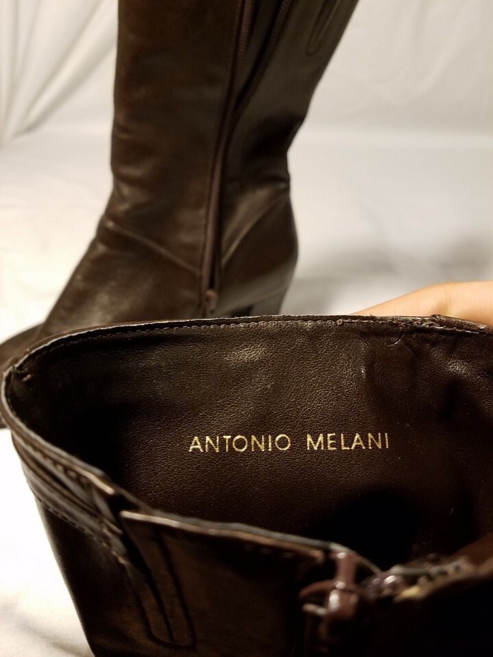 ANTONIO MELANI USED DARK BROWN WOMEN'S LEATHER BOOTS W/ ZIPPER SIZE 6 1/2 M