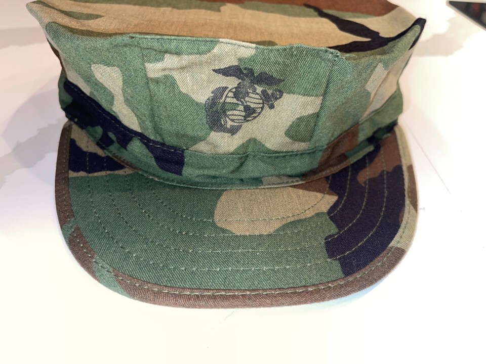 BDU WOODLAND 8 Point MARINE CORP USMC UTILITY CAP COVER W/ EGA XL