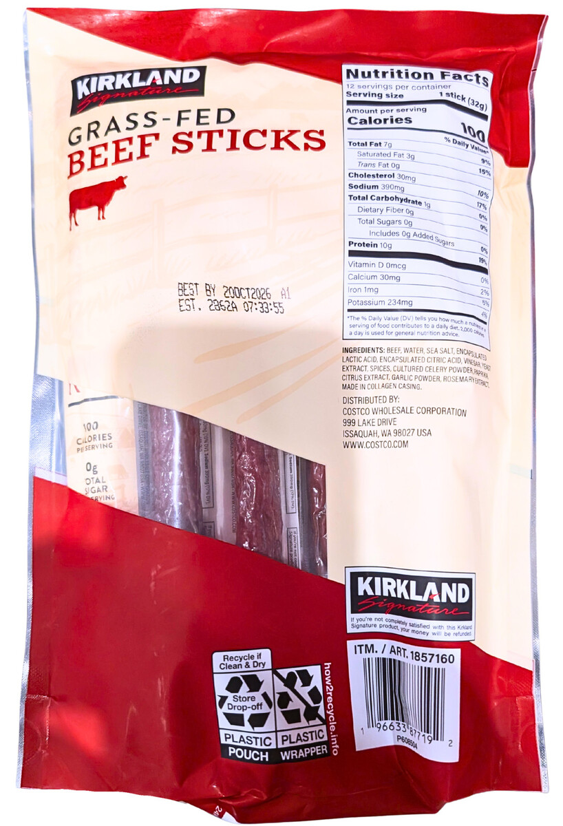 Kirkland Signature Grass-fed Beef Sticks 1.15 Oz 12-Count |