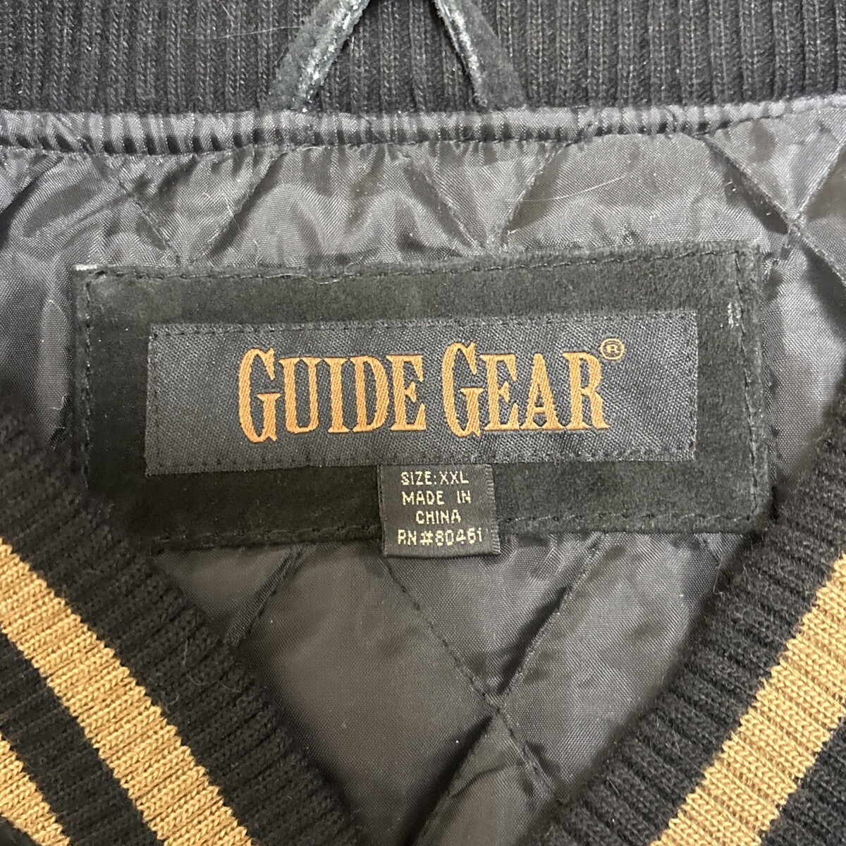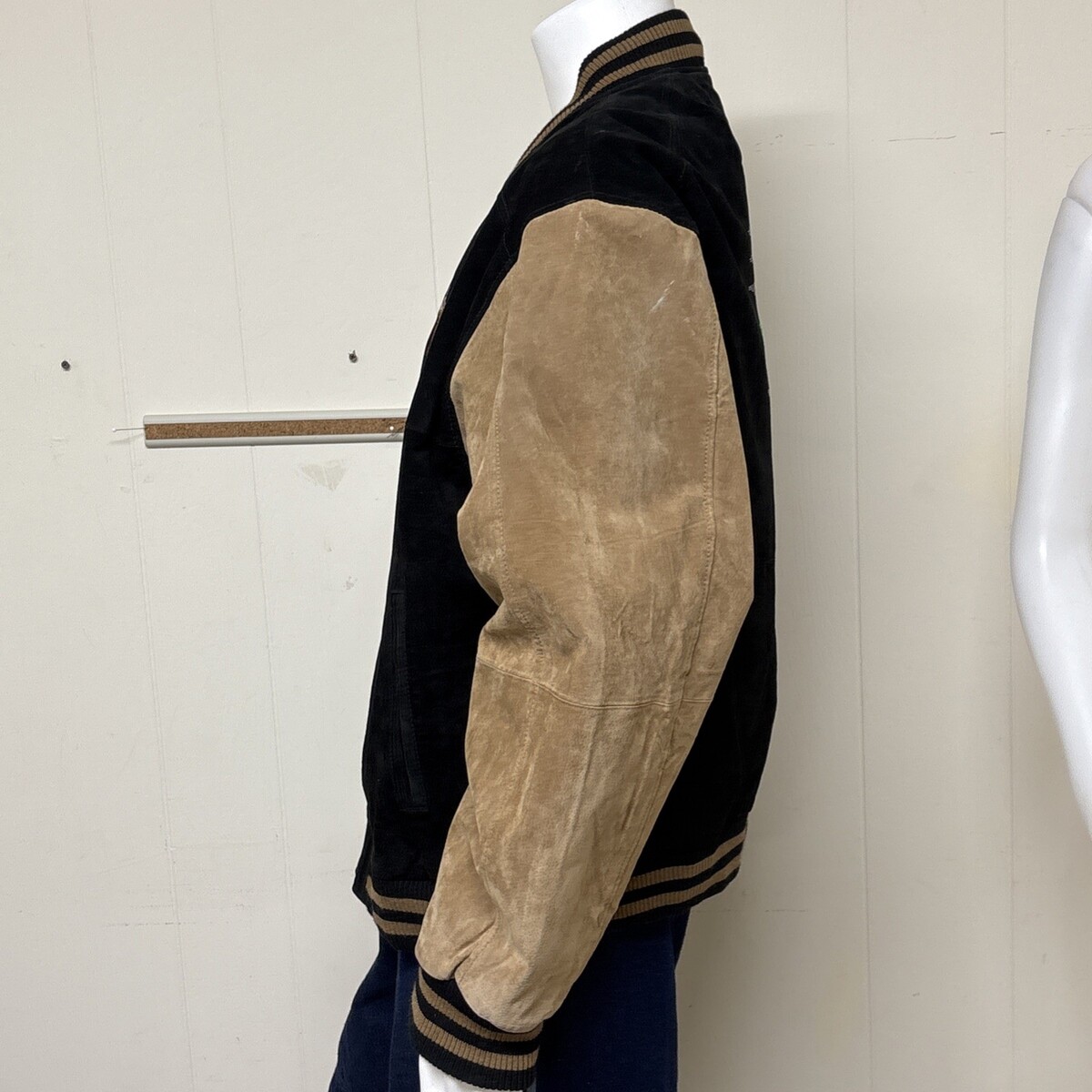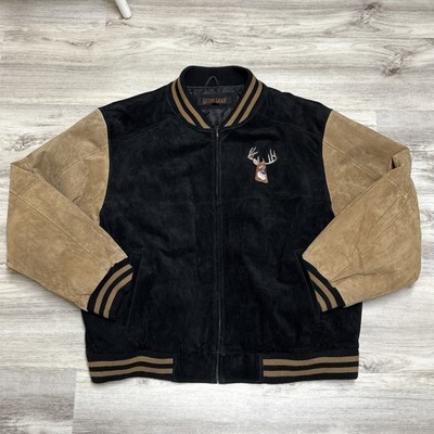 Vintage Leather Jacket Mens XXL Embroidered Varsity Pig Suede Bomber Black Tan