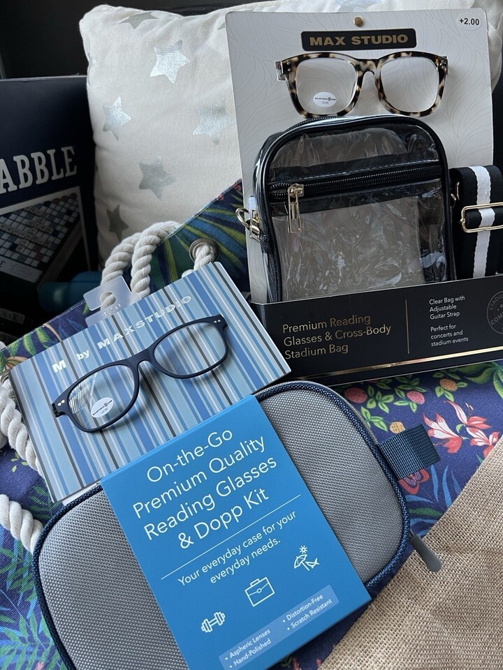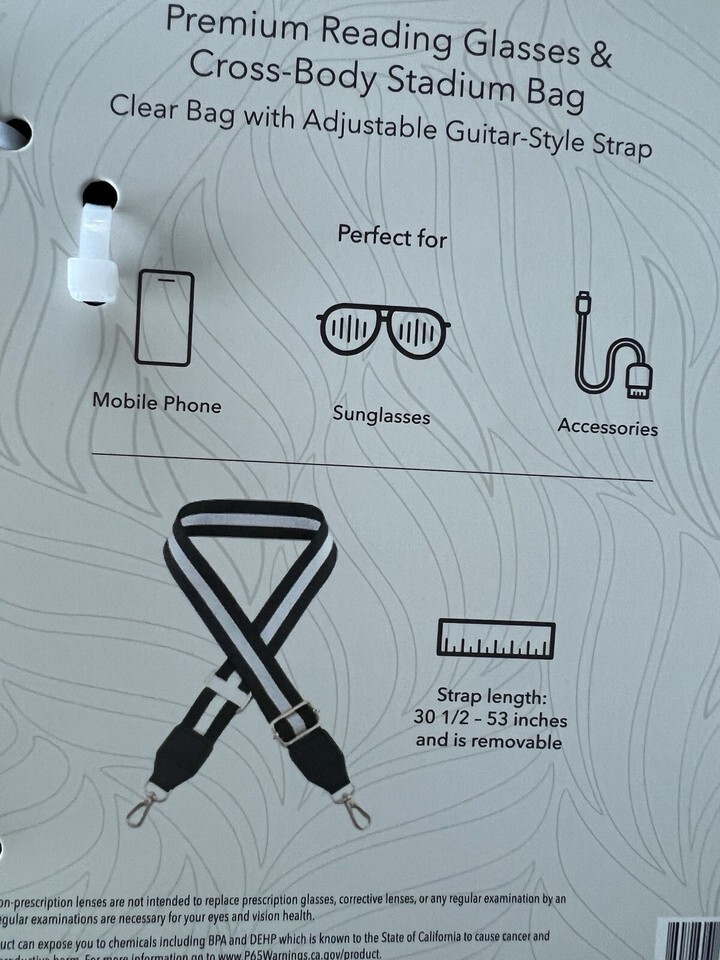 Max Studio Premium Reading Glasses & Cross Body clear Stadium Bag pick