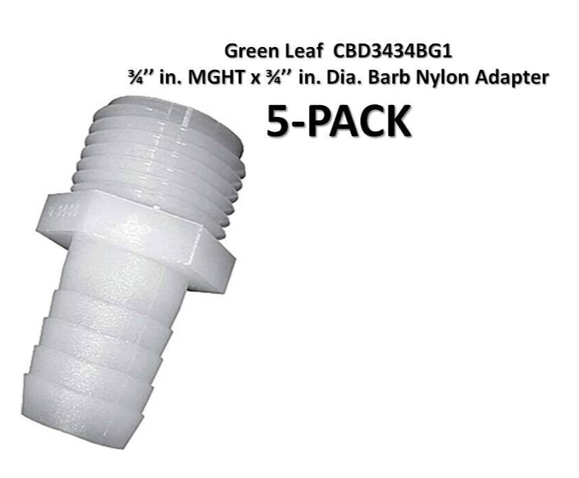 Adapter ¾’’ in. MGHT x ¾’’ in. Dia. Barb Nylon (5-PACK) - Green Leaf CBD3434BG1