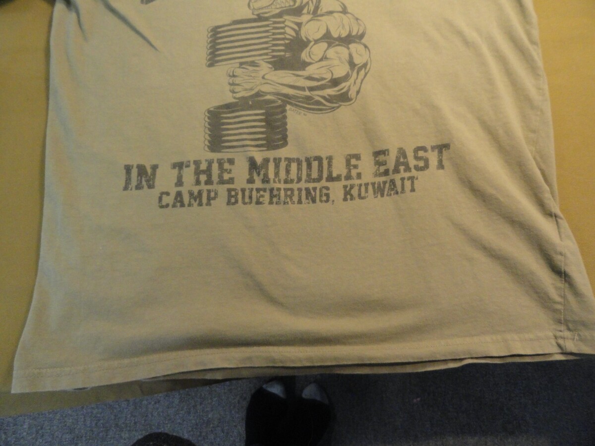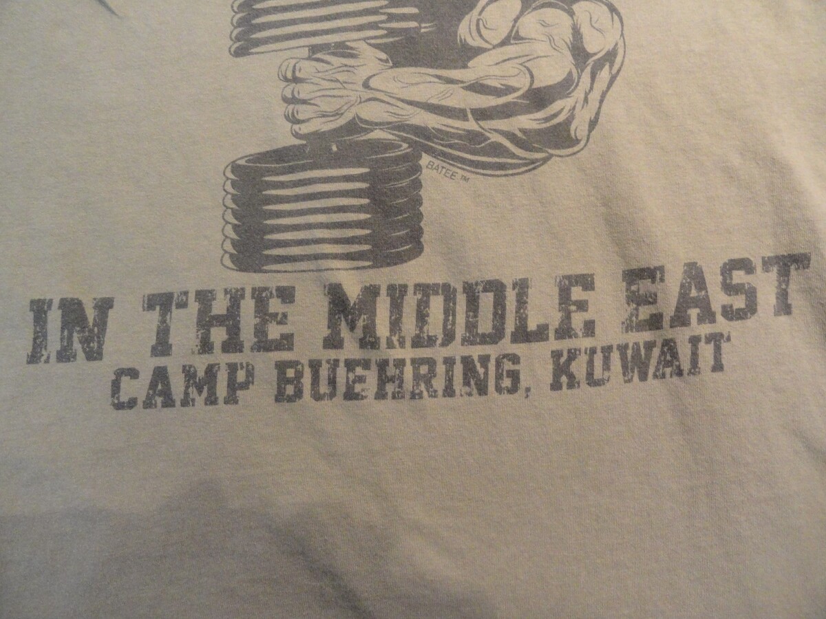 DISCONTINUED UNLEASHED IN THE MIDDLE EAST CAMP BUEHRING KUWAIT TAN SHIRT MEDIUM