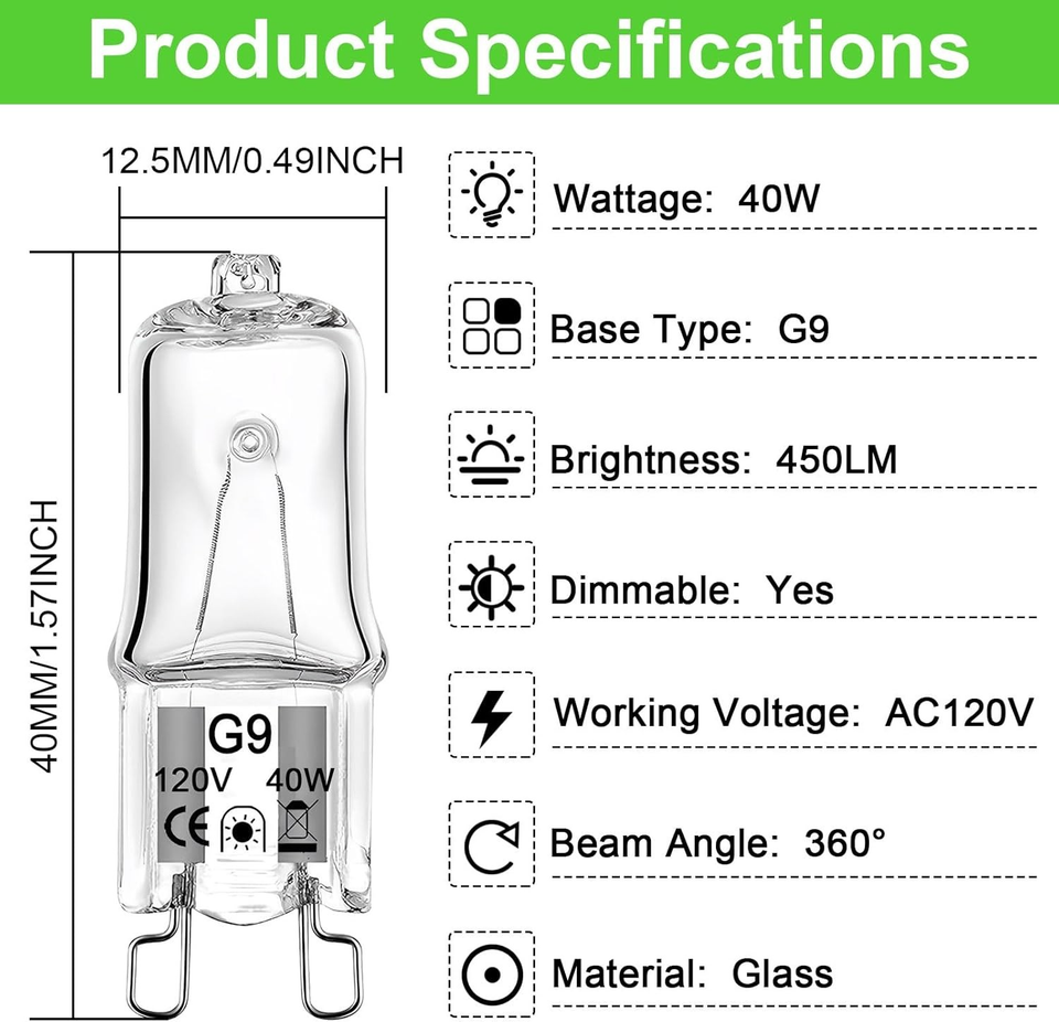 LONG LASTING LIFETIME G9 bulb 40w are made of better tungsten wire, lifespan is over 2000 hours, reducing the cost of replacement and maintenance.
